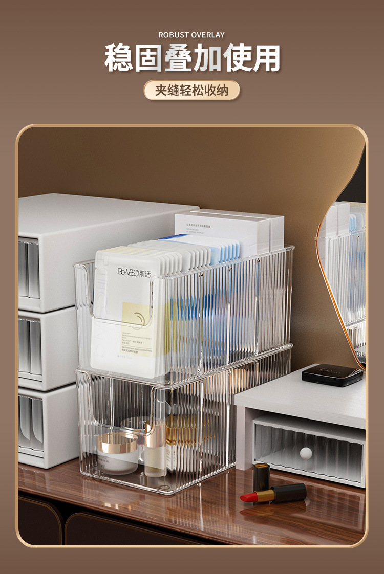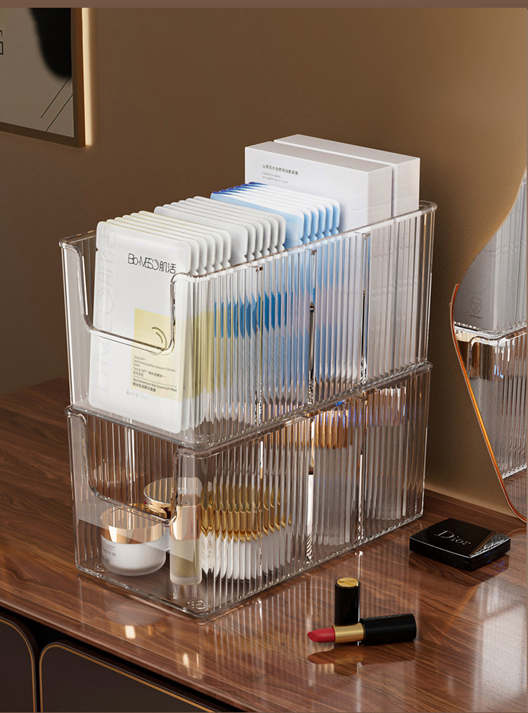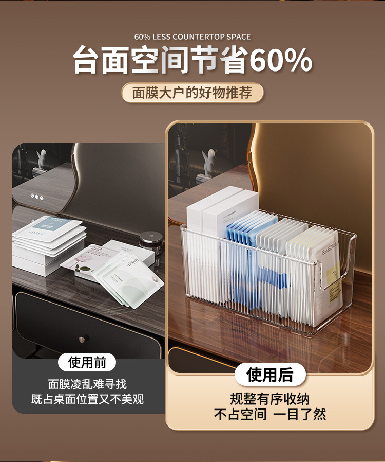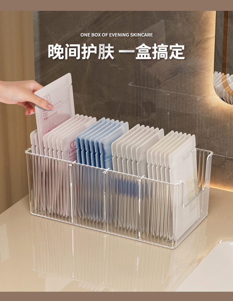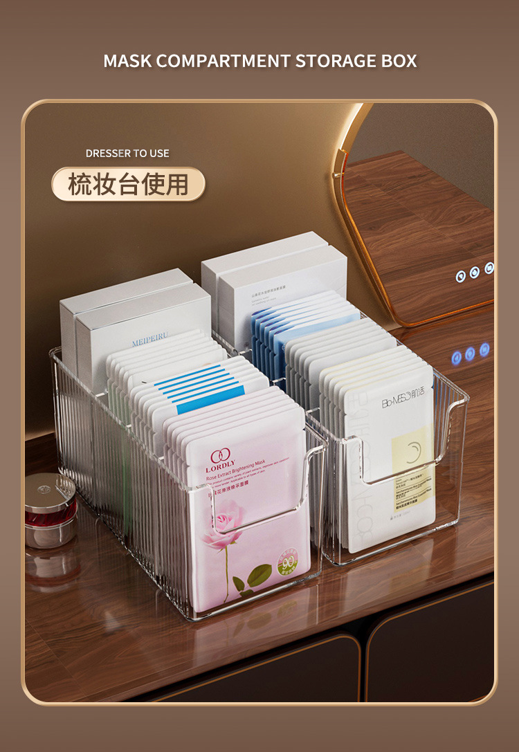 フェイシャルマスク収納ボックスアクリル化粧品コンパートメントボックス透明デスクトップ大容量ドレッシングテーブルスキンケア製品収納ラック