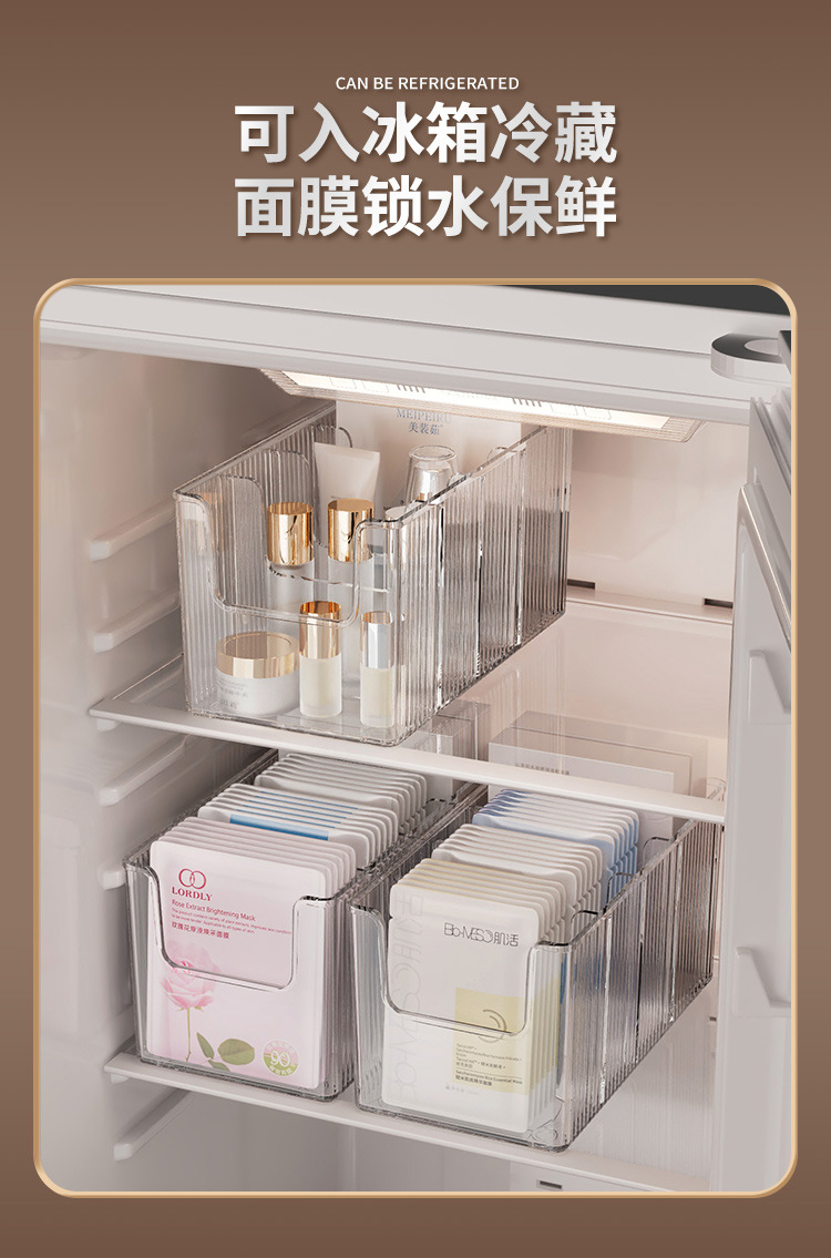 マスク収納ボックス(冷蔵庫収納可能・仕切り取り外し可能),【2個セット】フェイシャルマスク収納ボックス