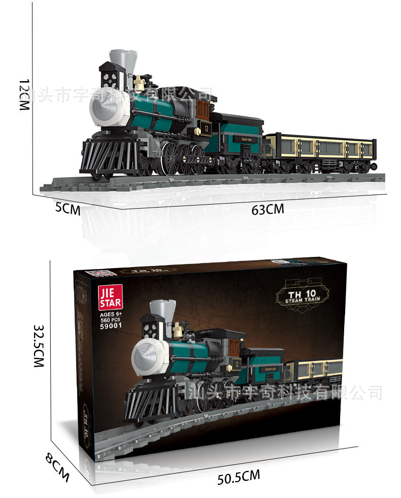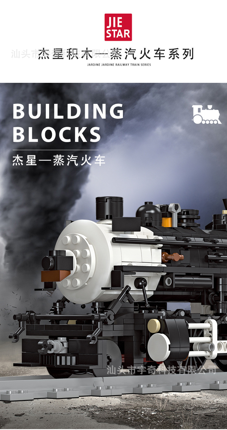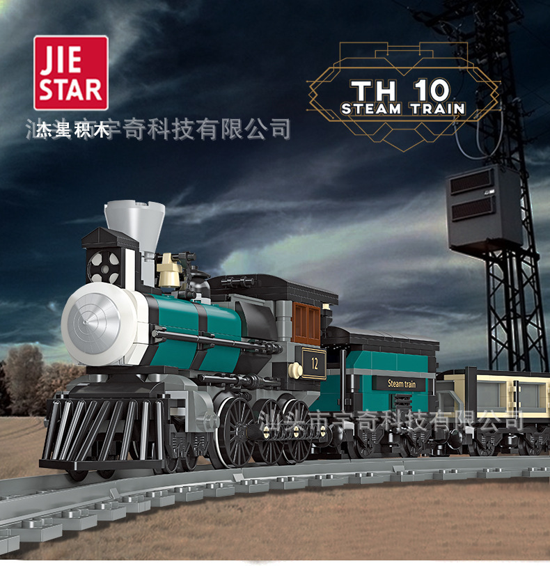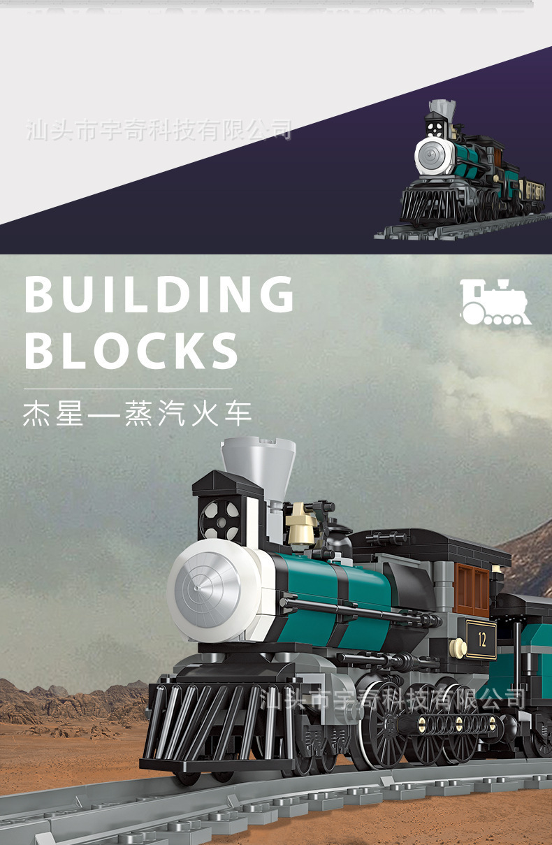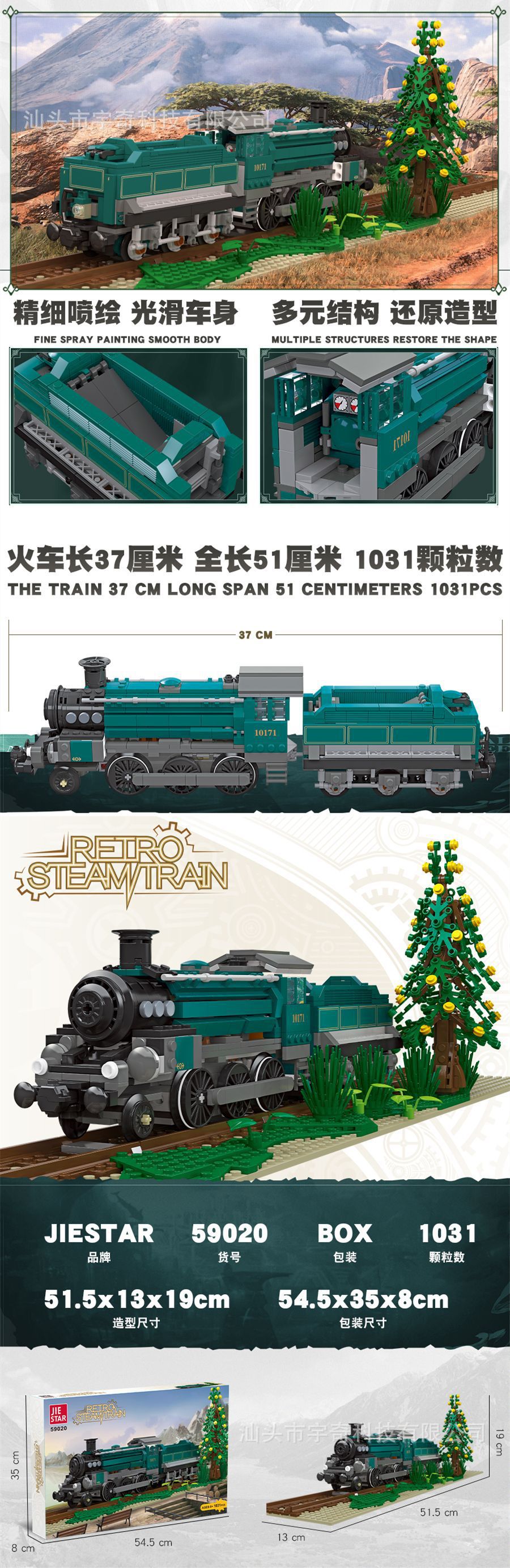 杰星59001复古蒸汽车仿真轨道火车电动模型摆件拼装积木跨境玩具