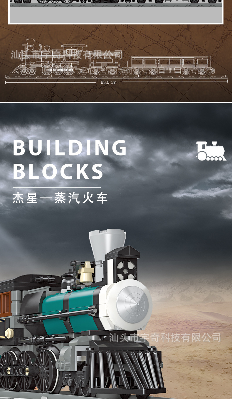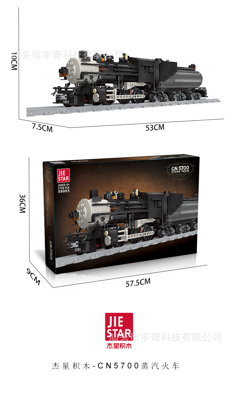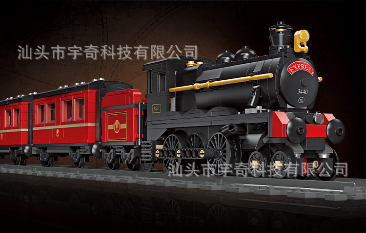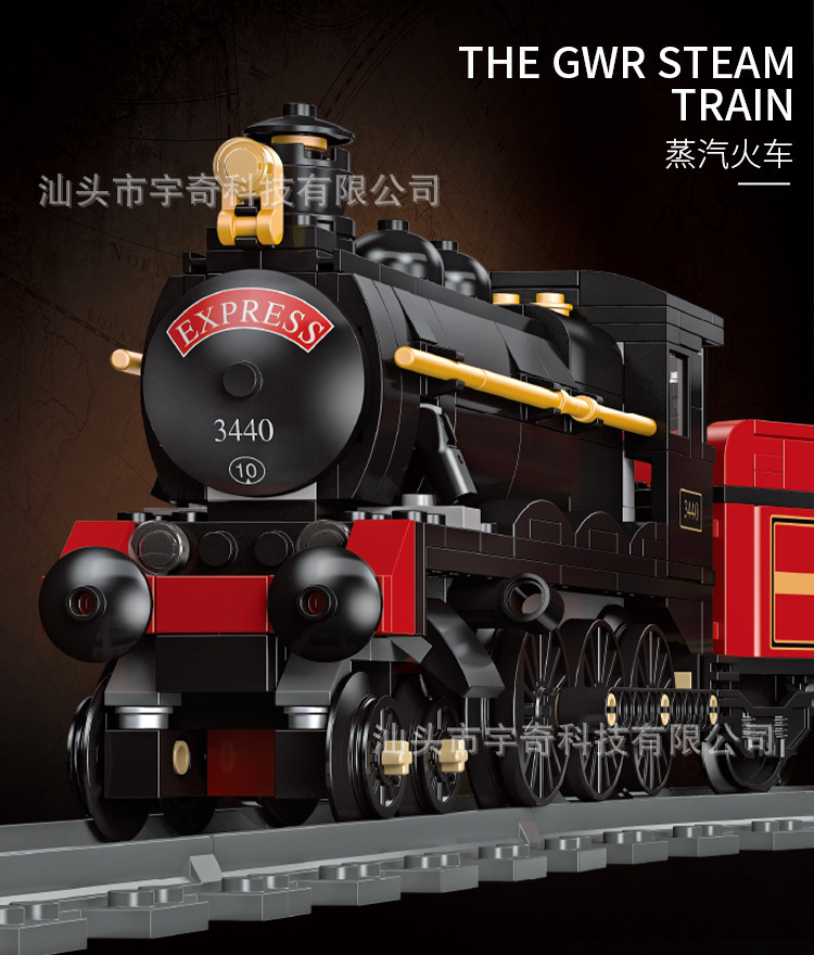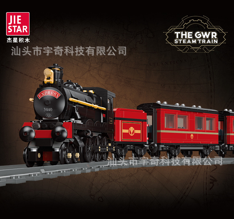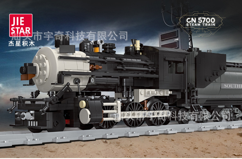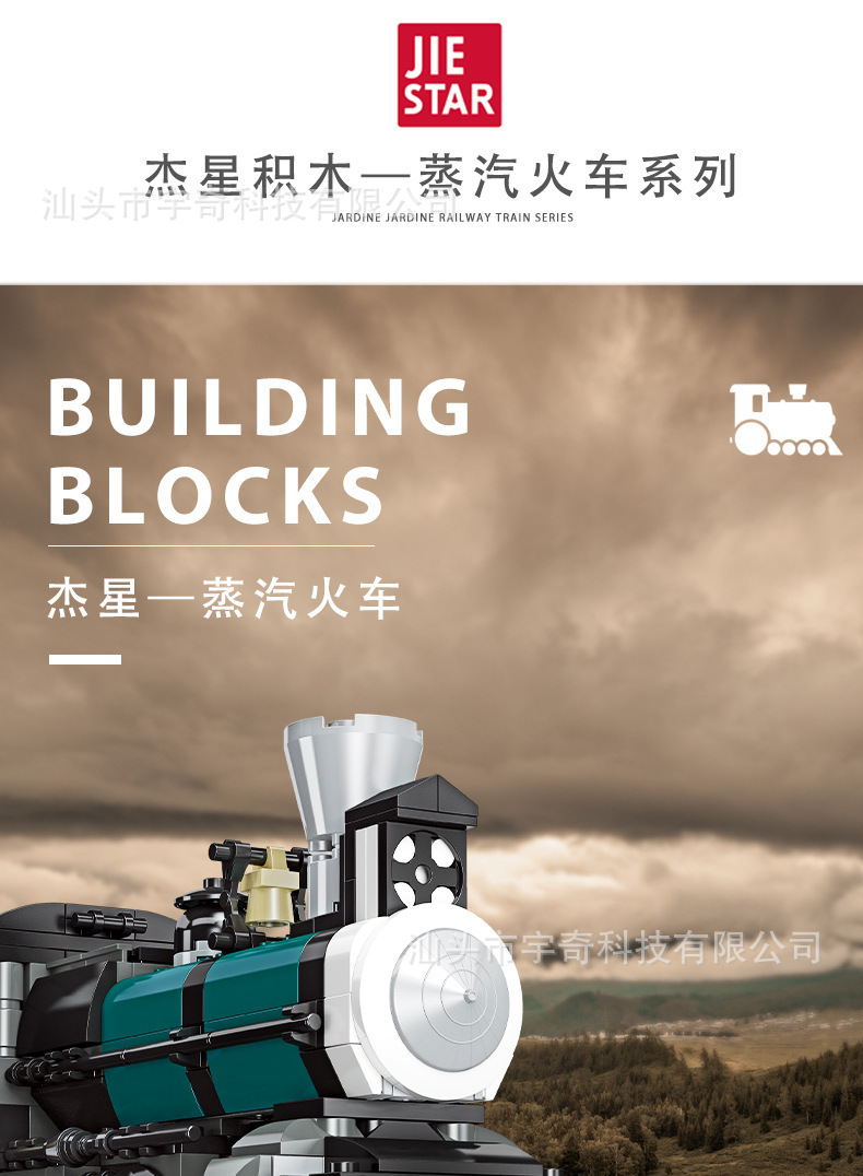 杰星59001复古蒸汽车仿真轨道火车电动模型摆件拼装积木跨境玩具