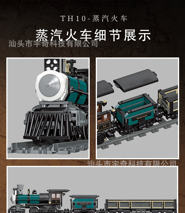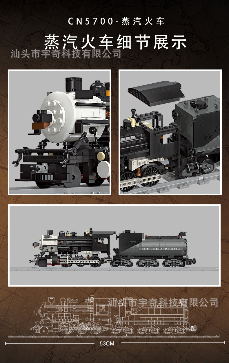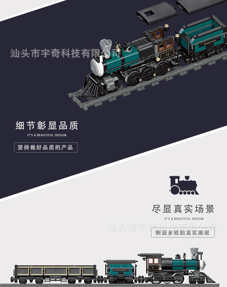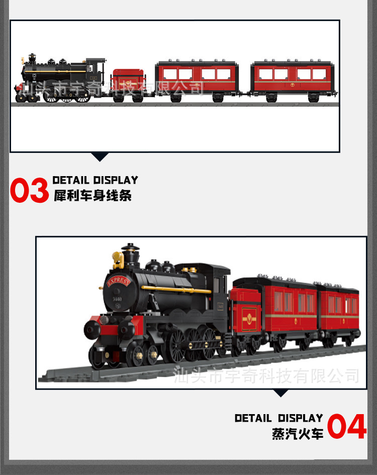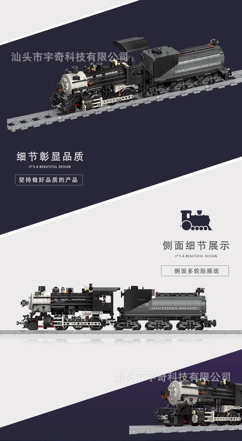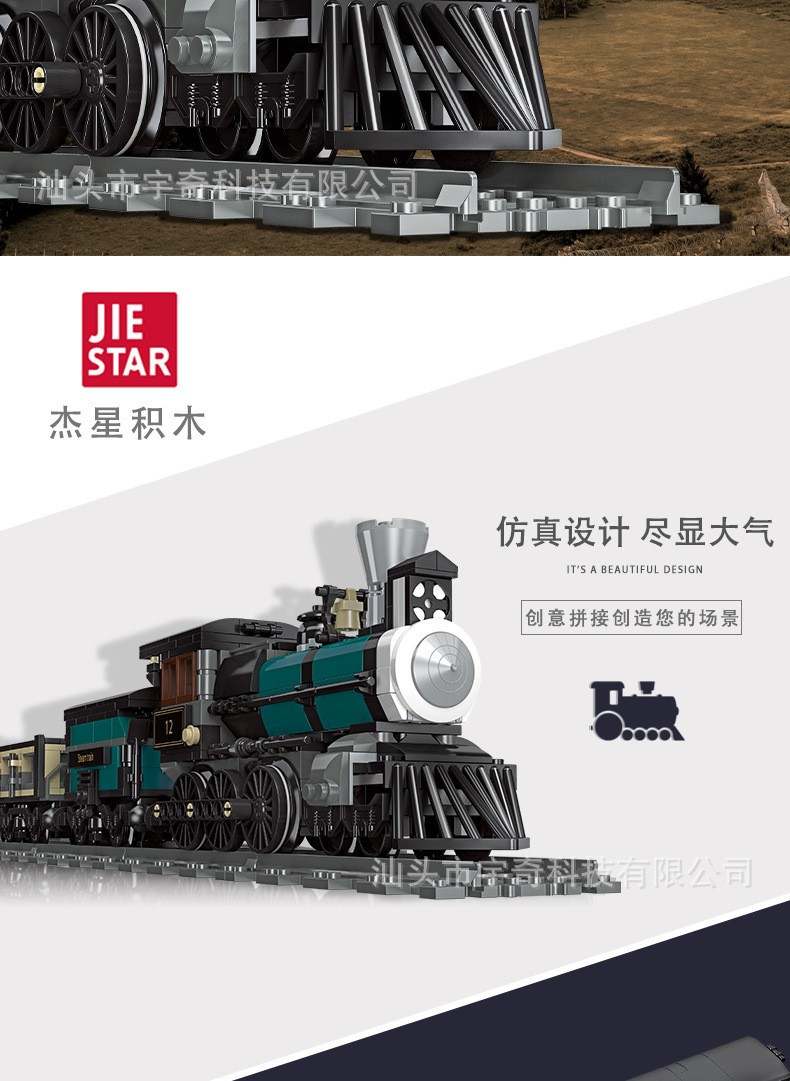 杰星59001复古蒸汽车仿真轨道火车电动模型摆件拼装积木跨境玩具