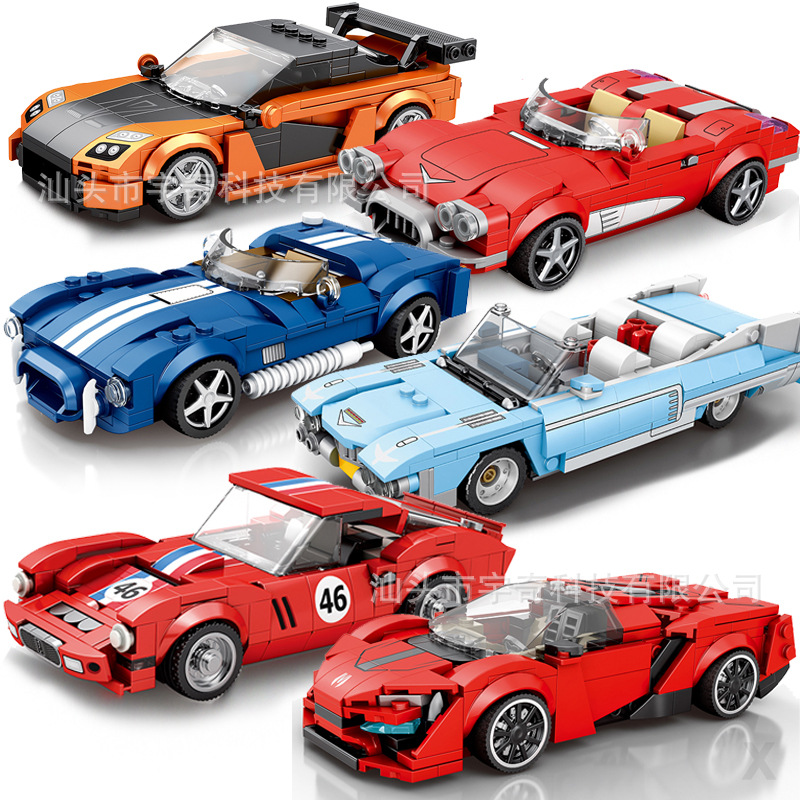 レーシングチャンピオンスポーツカーモデルと互換性のあるクロスボーダーホットセール8グリッドカー組み立てられた小さな粒子ビルディングブロック子供の知育玩具