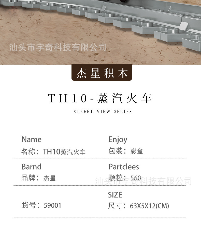 杰星59001-20TH10蒸汽机车仿真火车模型儿童拼装颗粒积木男孩玩具