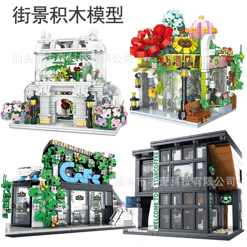 高密思T2069-72街景系列咖啡屋花店拼装小颗粒积木礼物玩具灯光