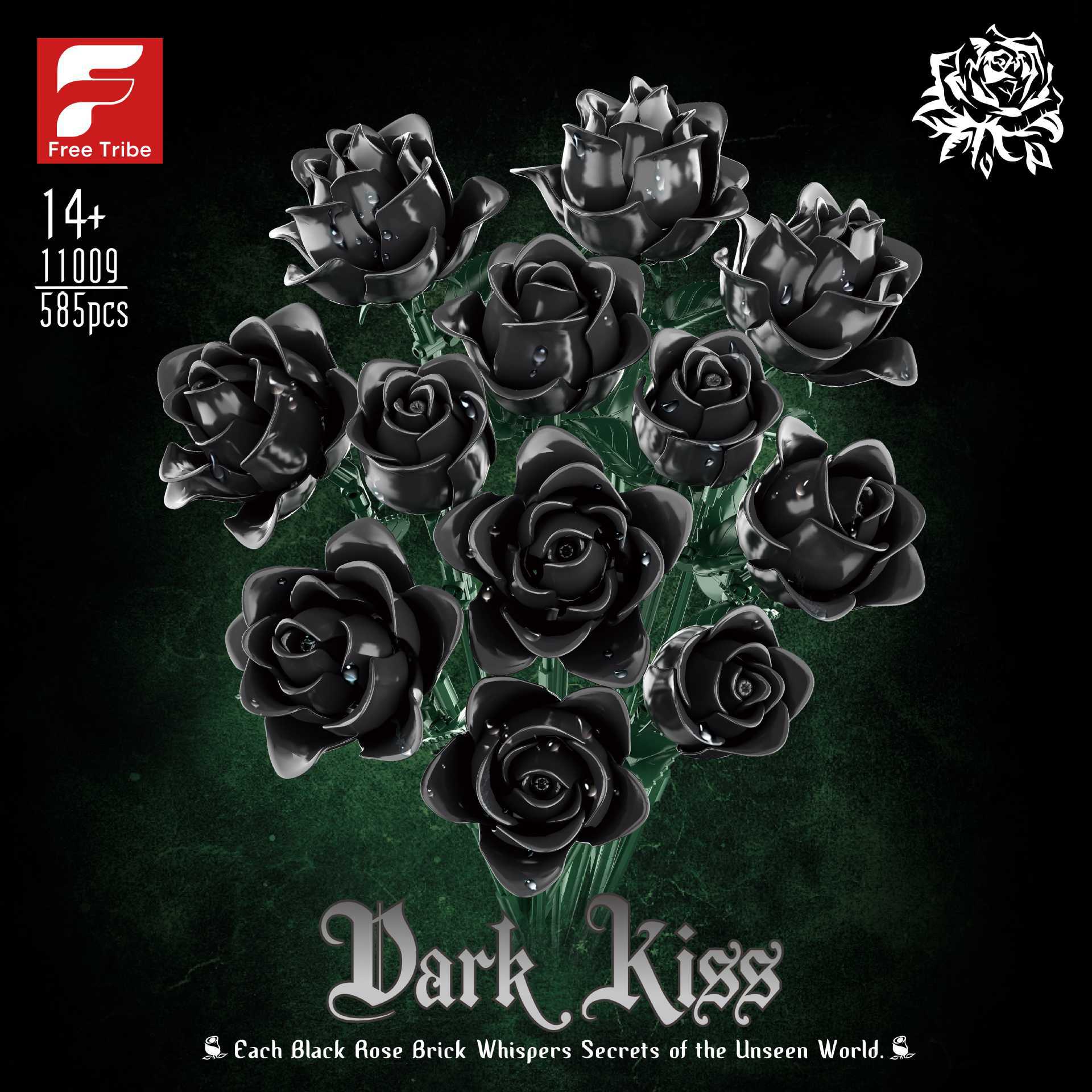 クロスボーダー Freetribe11009 ビルディングブロックブラックローズシミュレーションブーケ組み立てモデルデスクトップフラワー装飾品おもちゃ