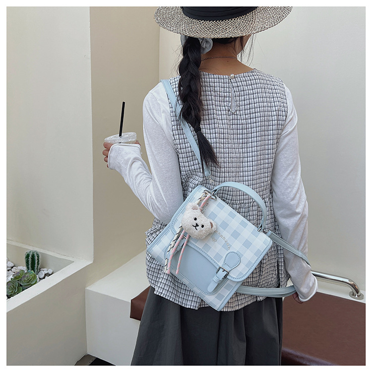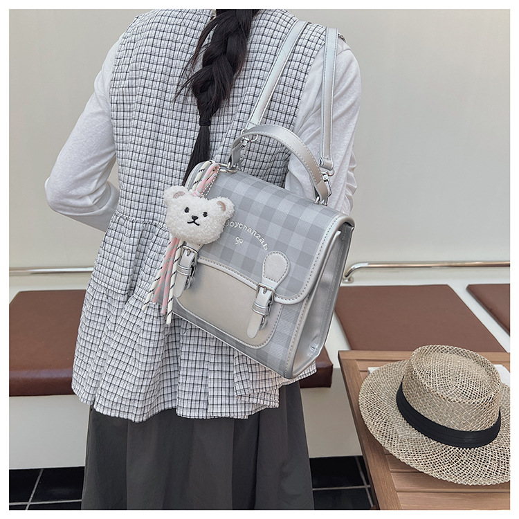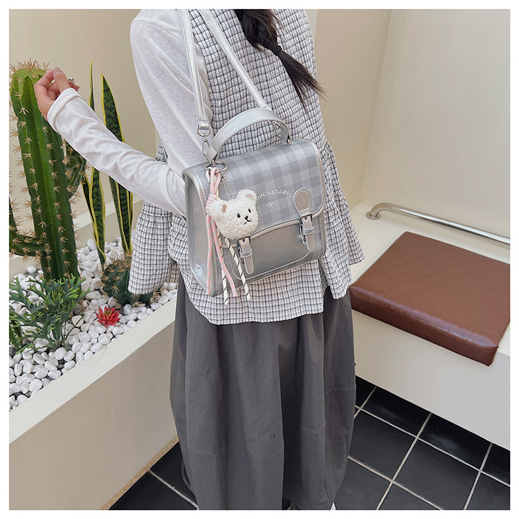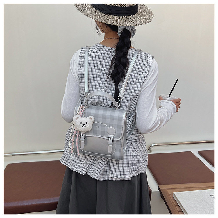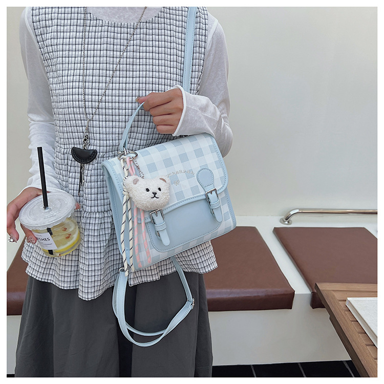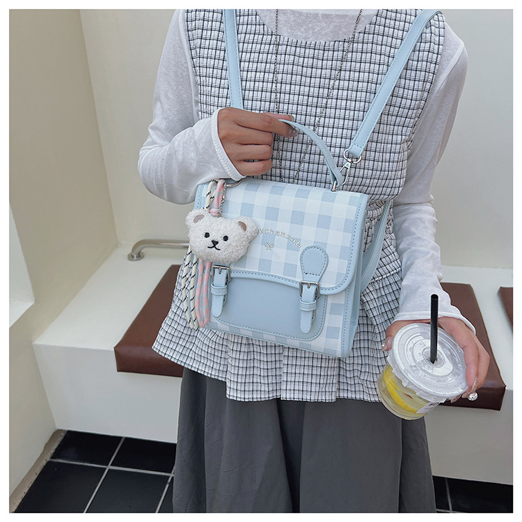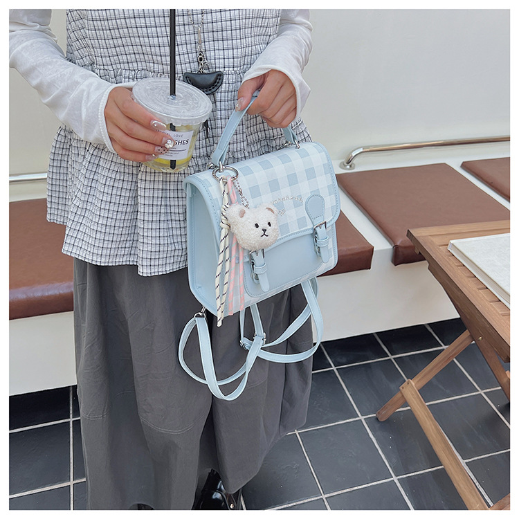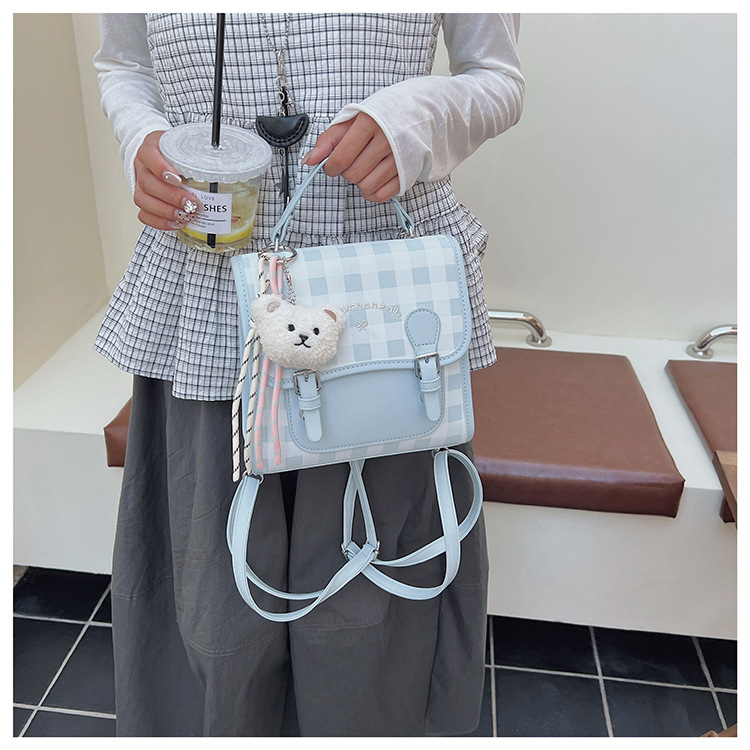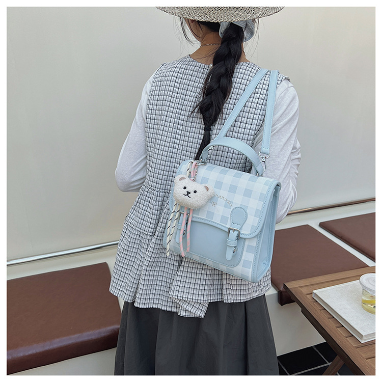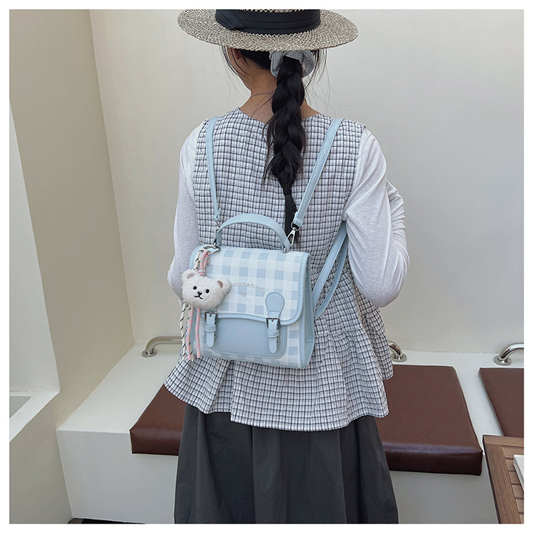 日系学院风双肩包包女2025夏季文艺小清新格子时尚休闲通勤后背包