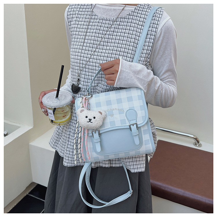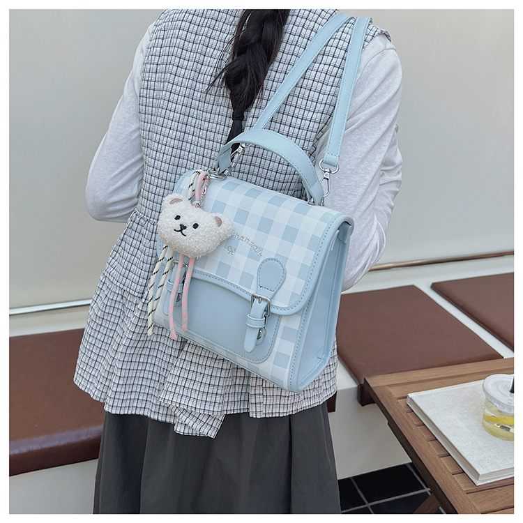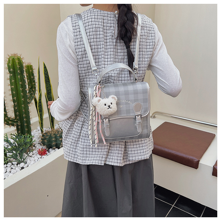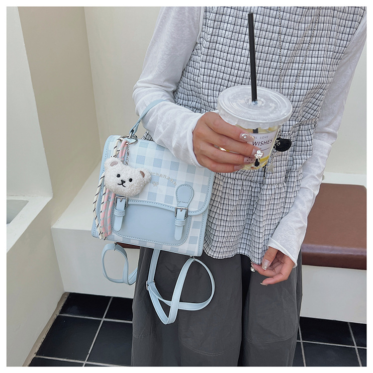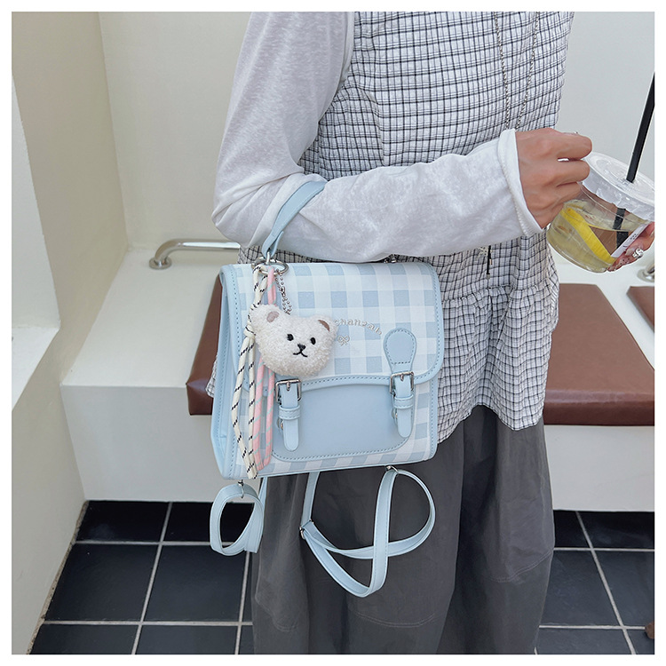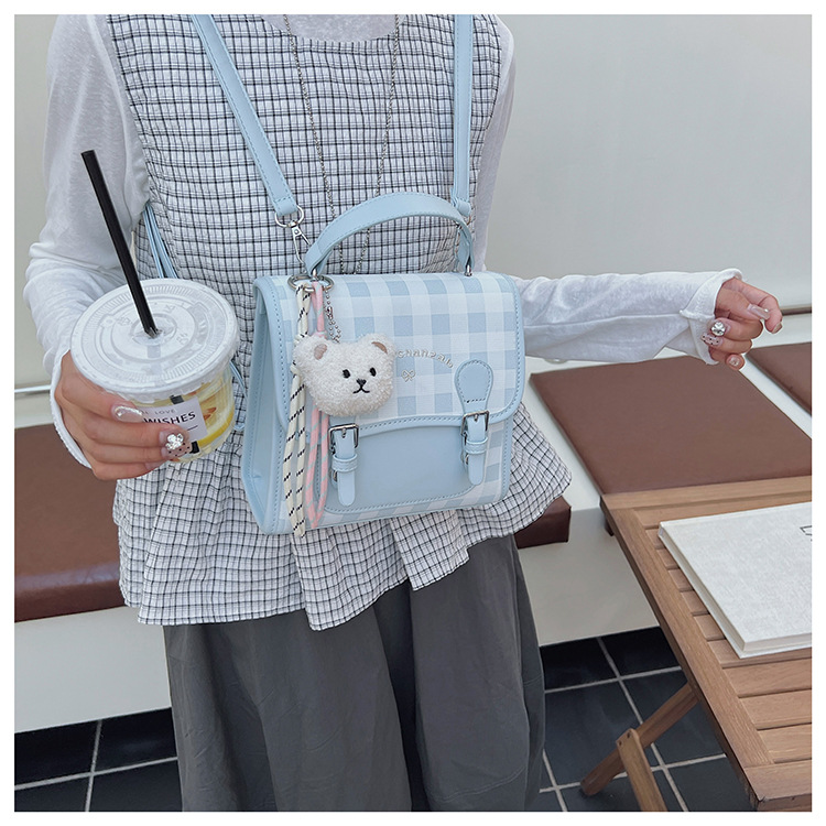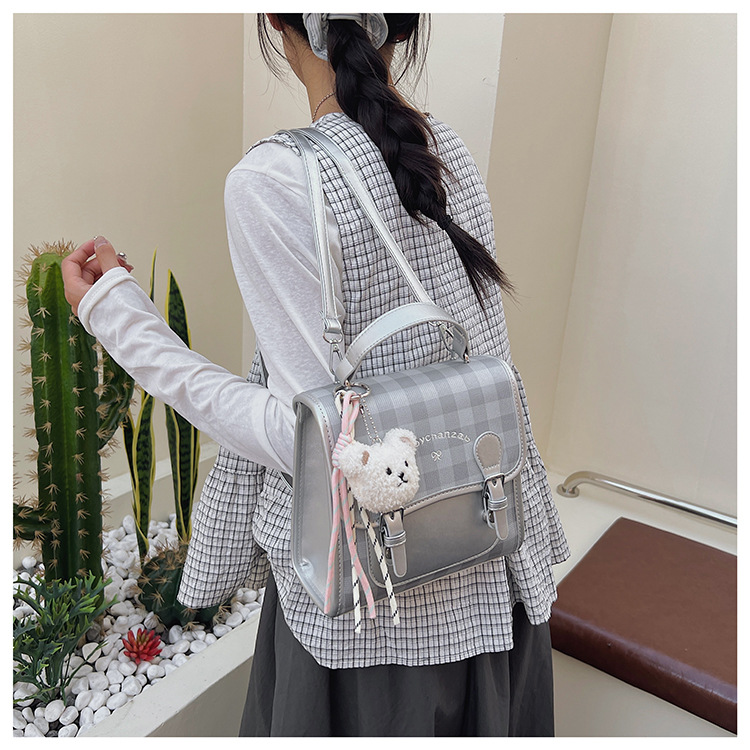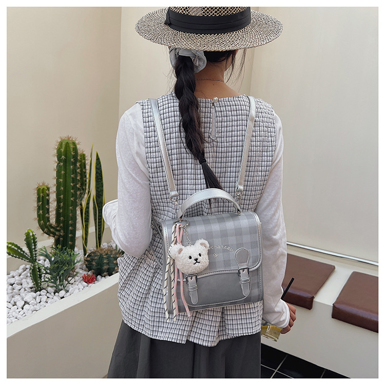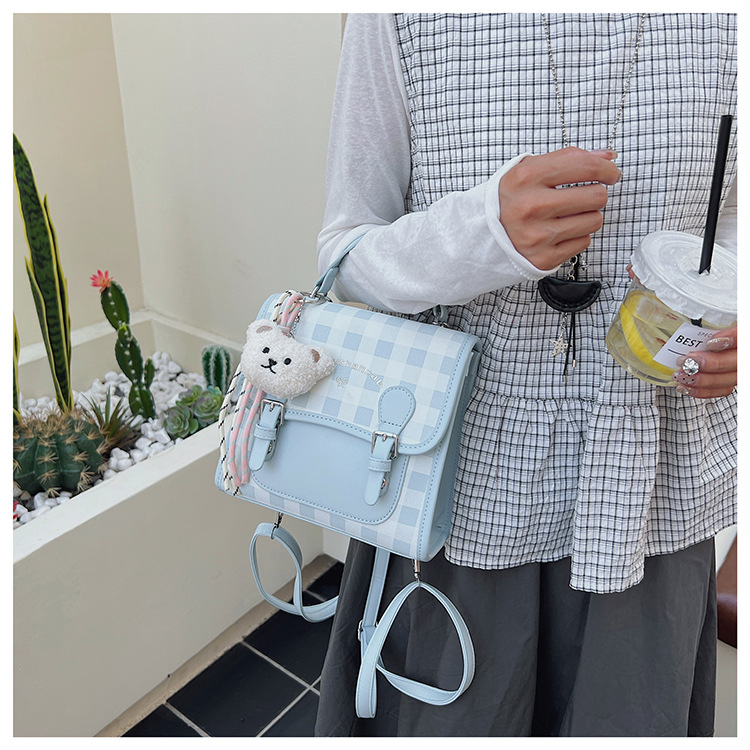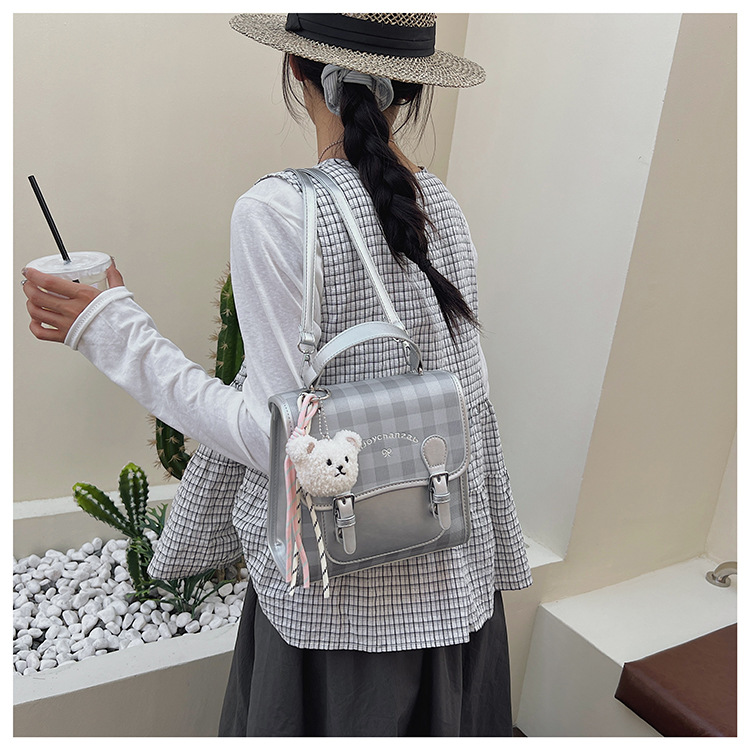 日系学院风双肩包包女2025夏季文艺小清新格子时尚休闲通勤后背包