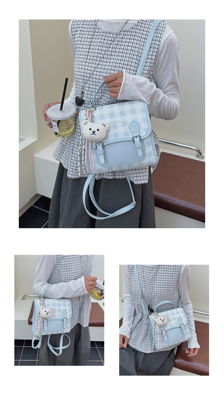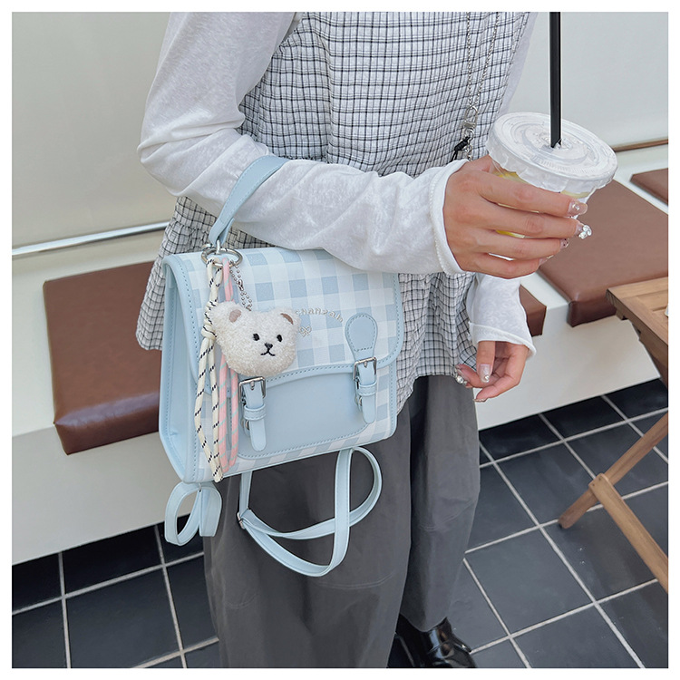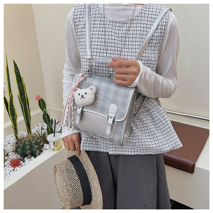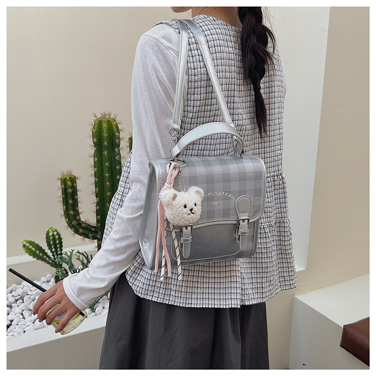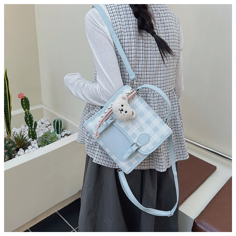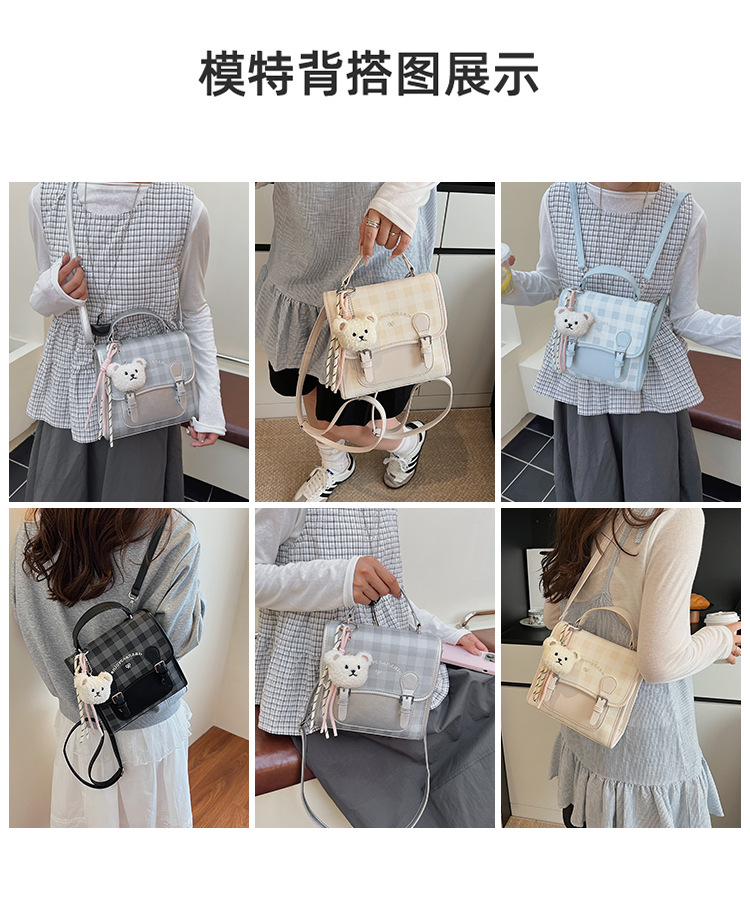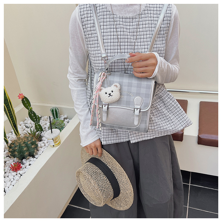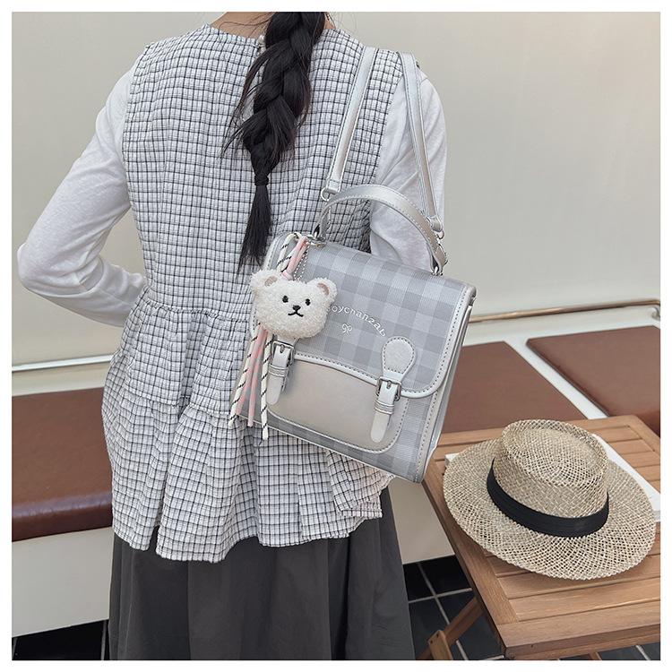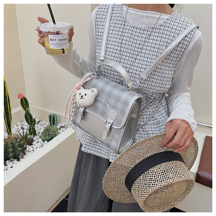 日系学院风双肩包包女2025夏季文艺小清新格子时尚休闲通勤后背包