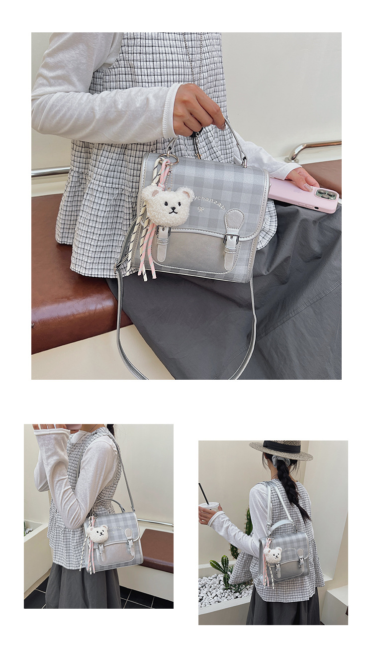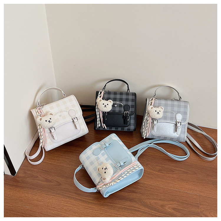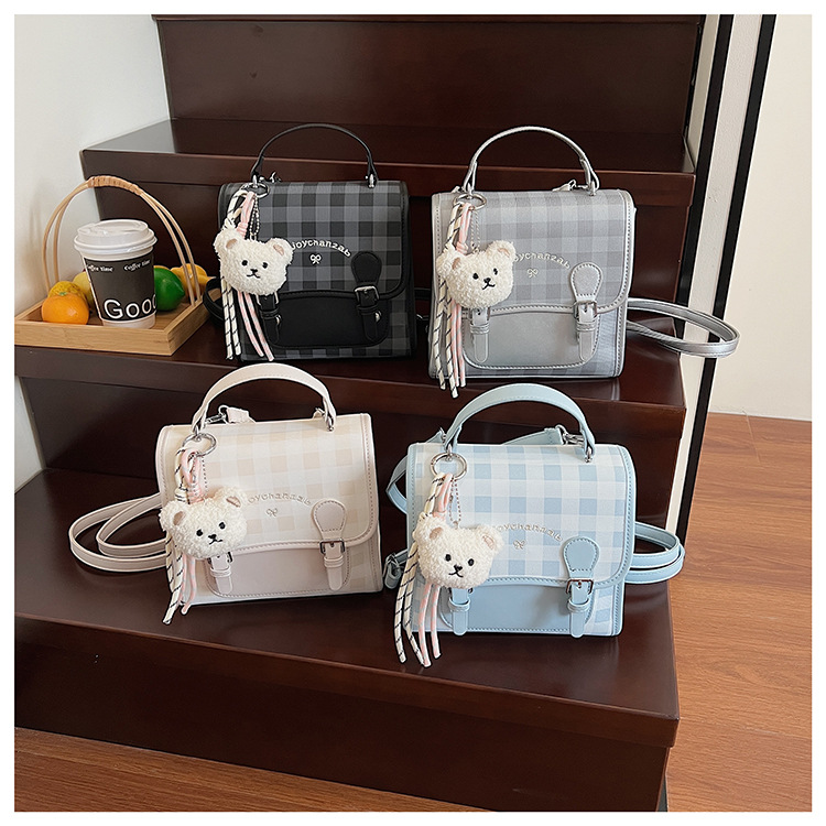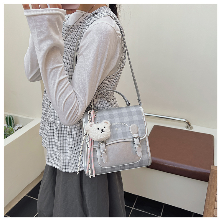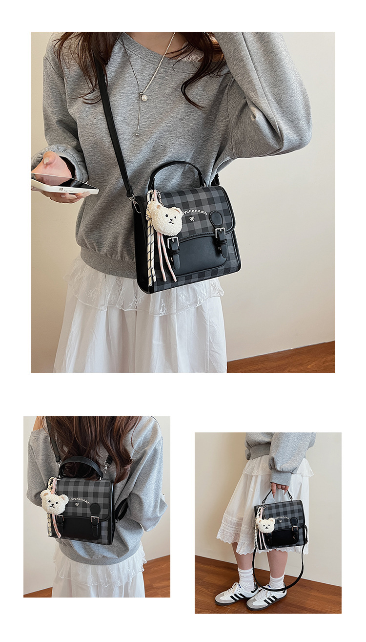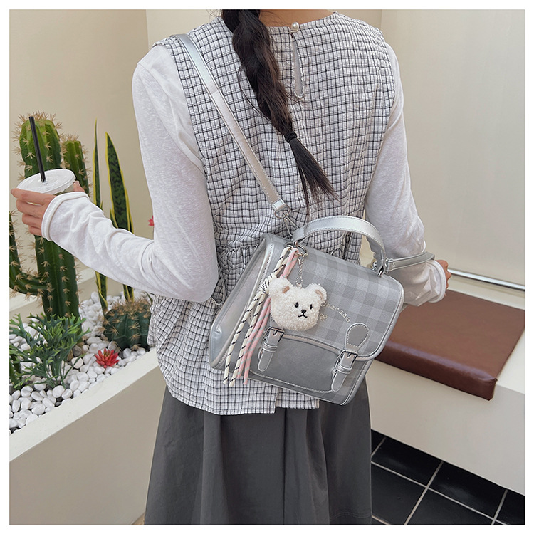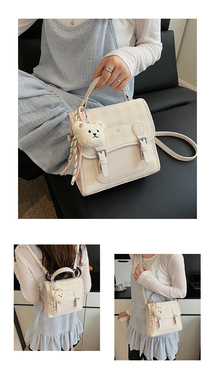 日系学院风双肩包包女2025夏季文艺小清新格子时尚休闲通勤后背包