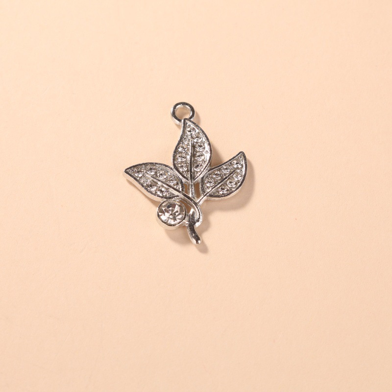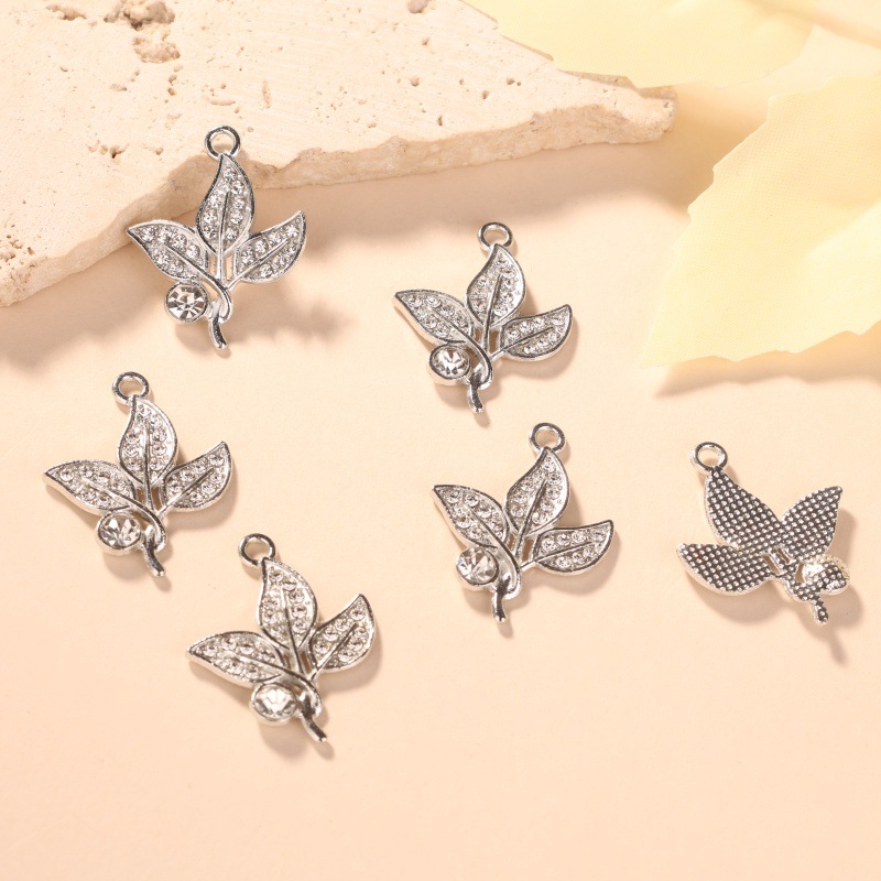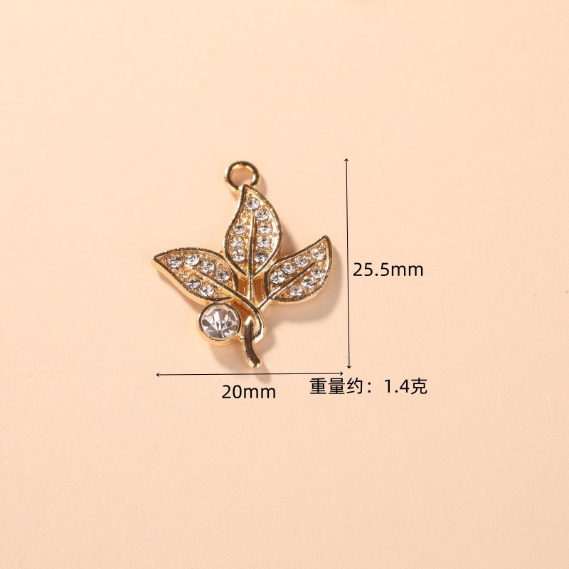 时尚树叶点钻吊坠耳坠个性饰品配件满钻合金挂件DIY挂件电镀饰品