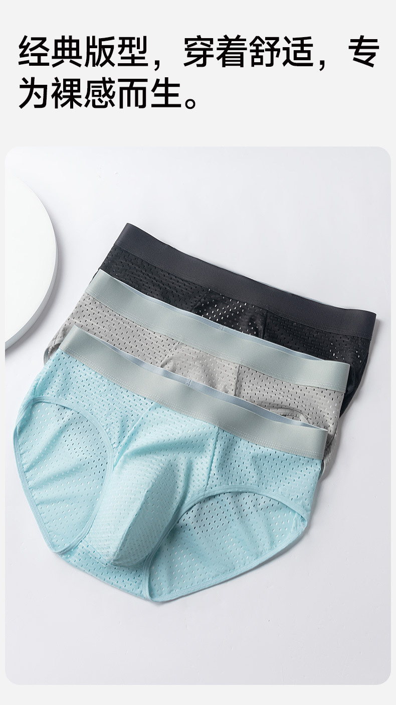 男款超薄冰丝男士三角网孔内裤夏季无痕透气速干
