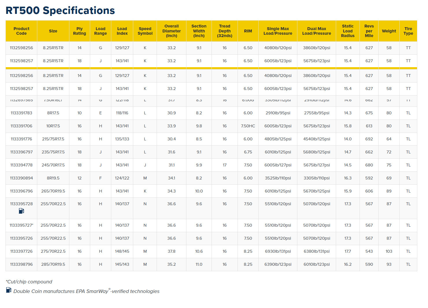 ダブルマネーカー トラックタイヤ 8R17.5 タイヤ RT500 パターン トラック バス トラックタイヤ