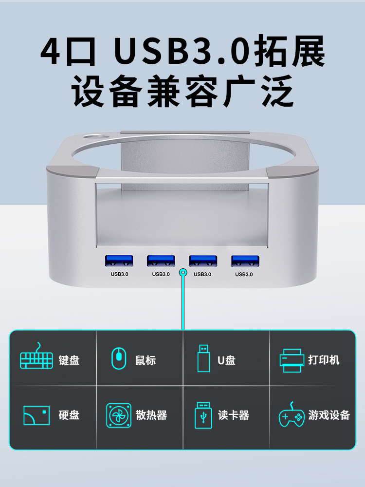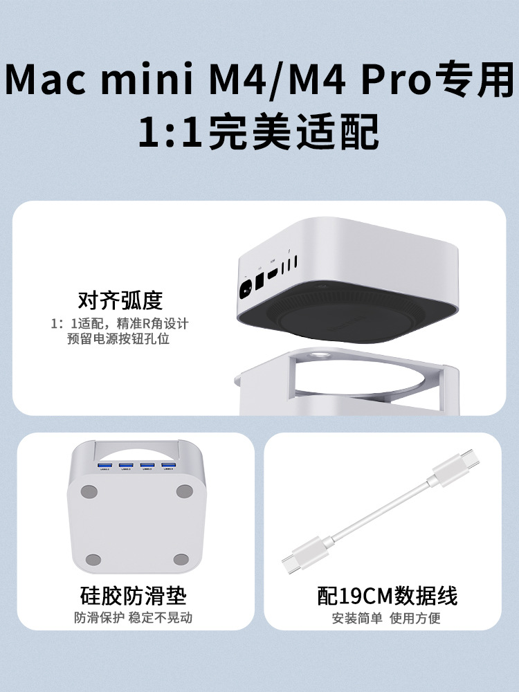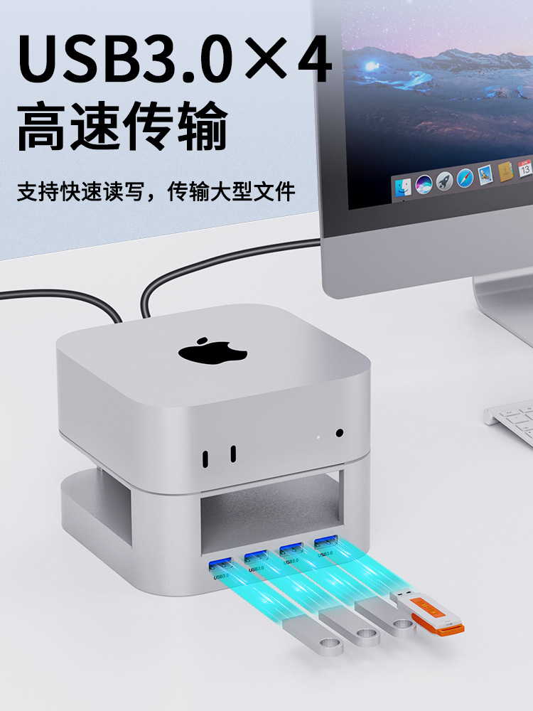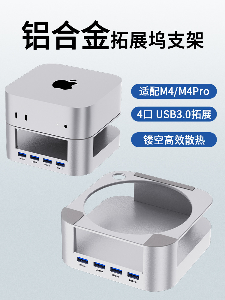 铝合金适用Mac mini M4/M4 Pro支架拓展坞USB3.0底座开机便捷