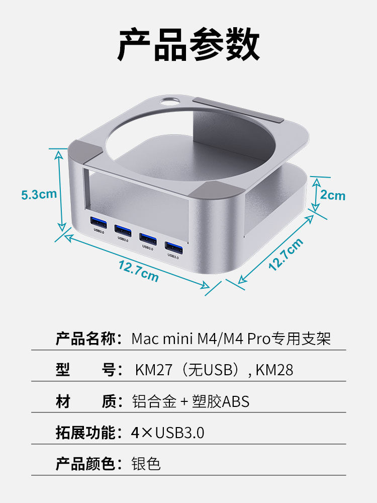 颜色 KM28-铝合金带USB拓展坞,KM27-铝合金简洁款不带USB