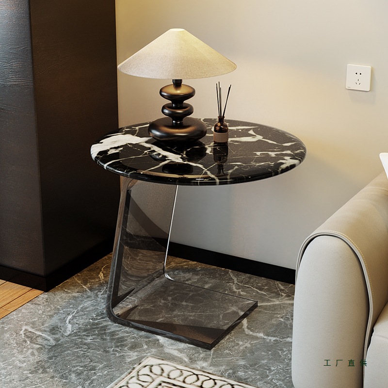 极简岩板小圆茶几家用客厅沙发小边几卧室阳台小圆桌轻奢角几