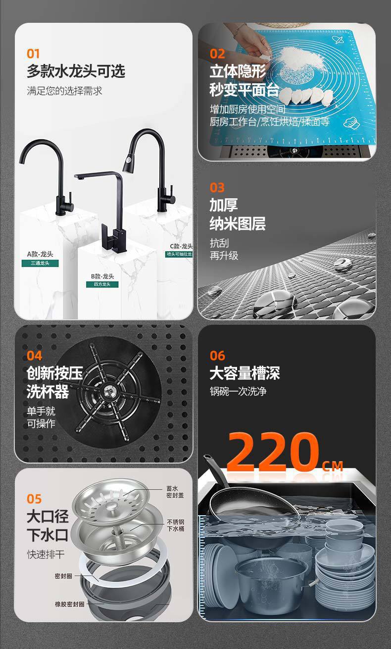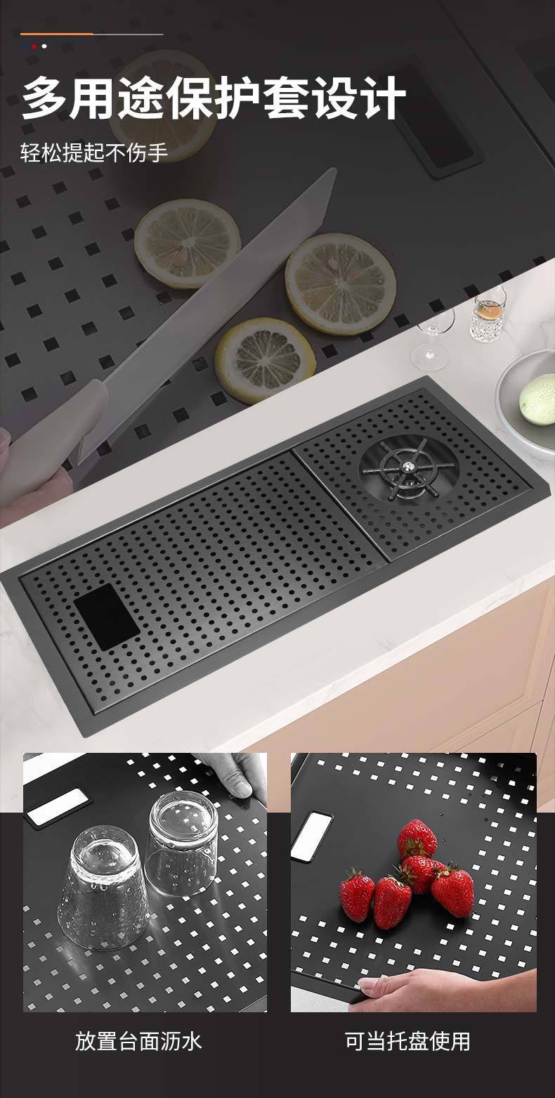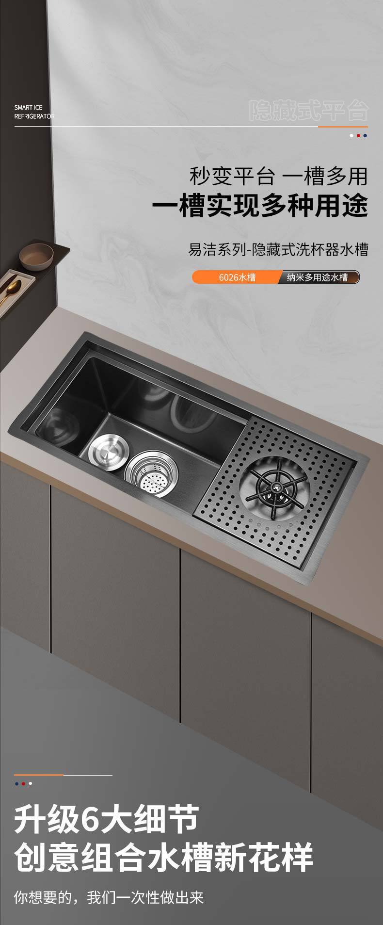 隐藏式洗杯器水槽纳米不锈钢洗菜盆中岛吧台隐形水盆带盖板洗手池