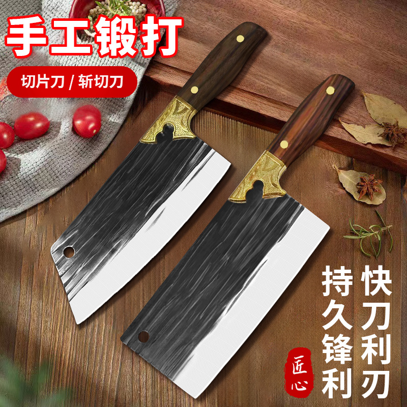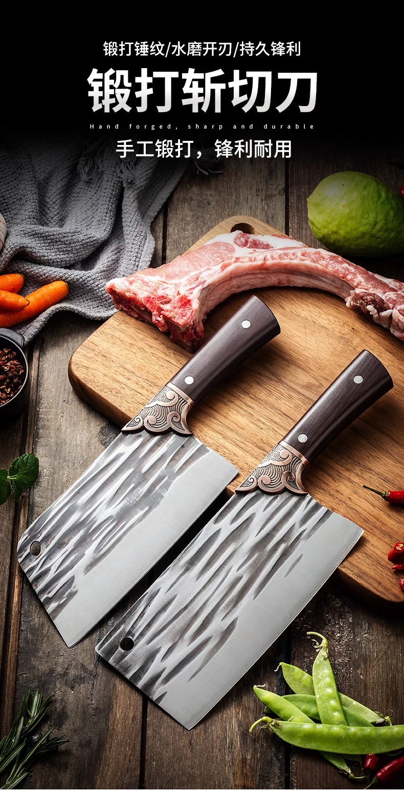 手打锻打菜刀家用刀具切菜刀切肉切片刀厨师砍骨刀阳江斩切两用刀