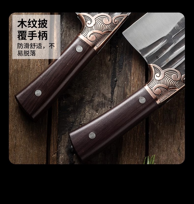 龙泉手工锻打斩切两用菜刀两件套家用厨房不锈钢斩切刀切菜刀锋利