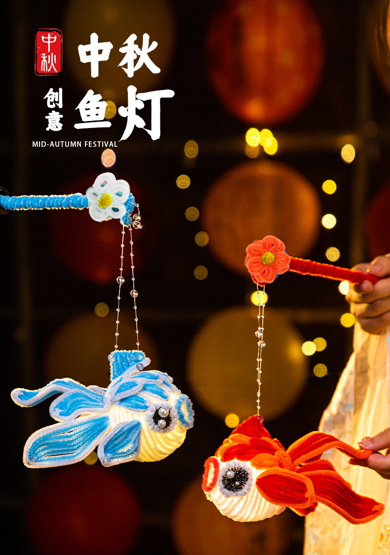 中秋節ランタン手作り diy 材料パッケージツイストスティック子供のポータブル漢服鯉金魚ランタン屋台卸売