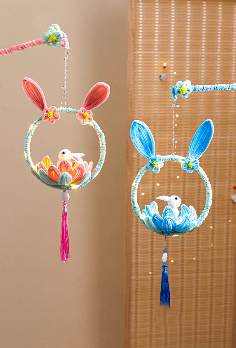 中秋節ランタン手作り diy 材料パッケージツイストスティック子供用ポータブル漢服ウサギ蓮ランタン屋台卸売