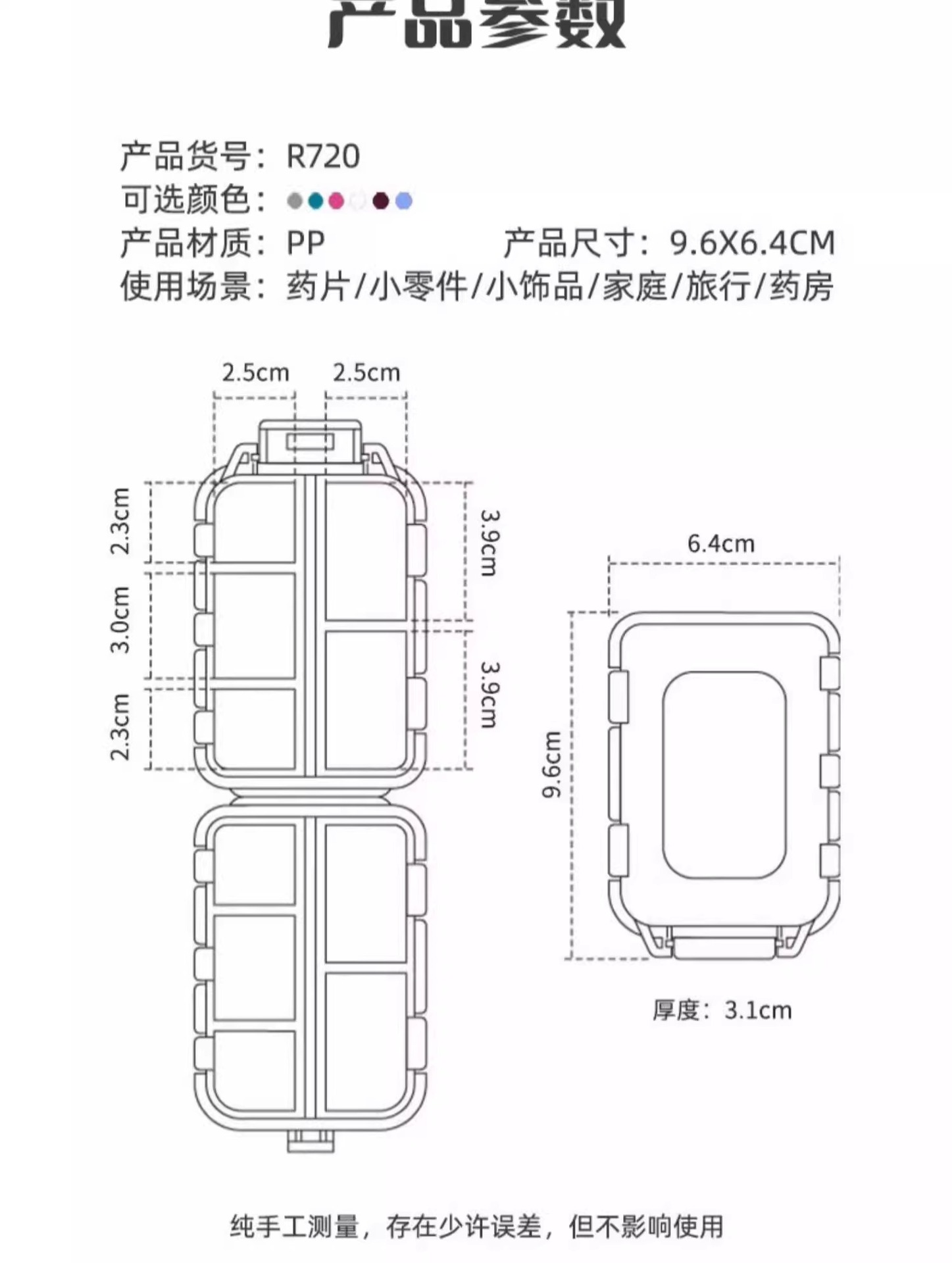 メーカー直供ポータブル10格分装ミニ持ち物薬箱一週間旅行錠剤収納箱