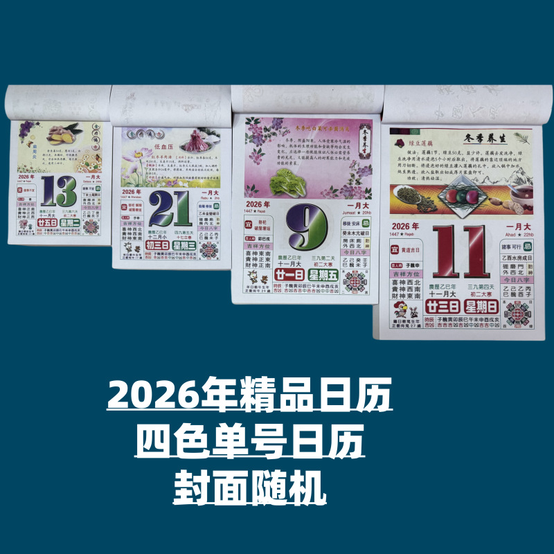 2026 プレミアム 4 色シングル/ダブルカレンダー カラー カレンダー 古い黄历 カラー新年カレンダー