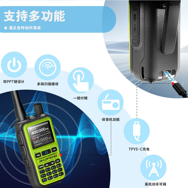 宝锋UV5RMINI对讲机手持器多频段户外民用手台Type-C一键对频英文