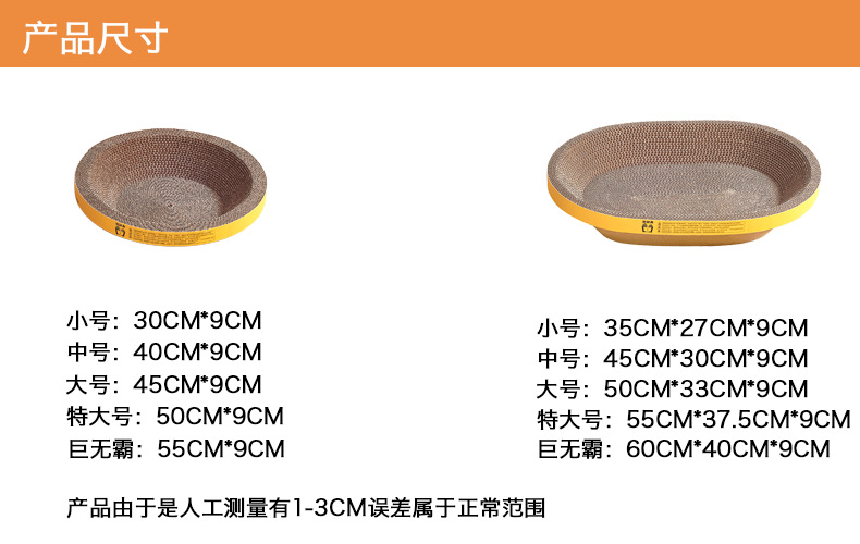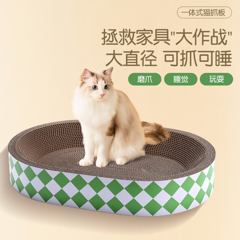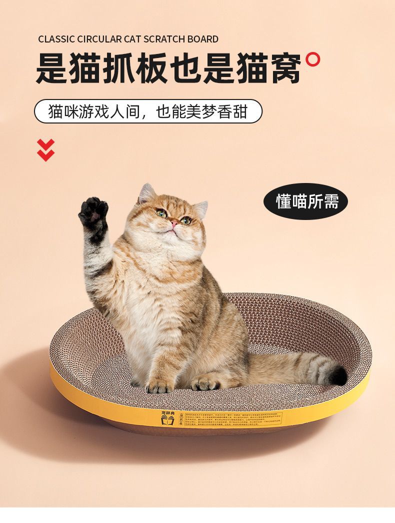 椭圆形猫抓板耐磨不掉屑一体猫窝猫咪玩具超大号瓦楞纸猫爪板猫盆