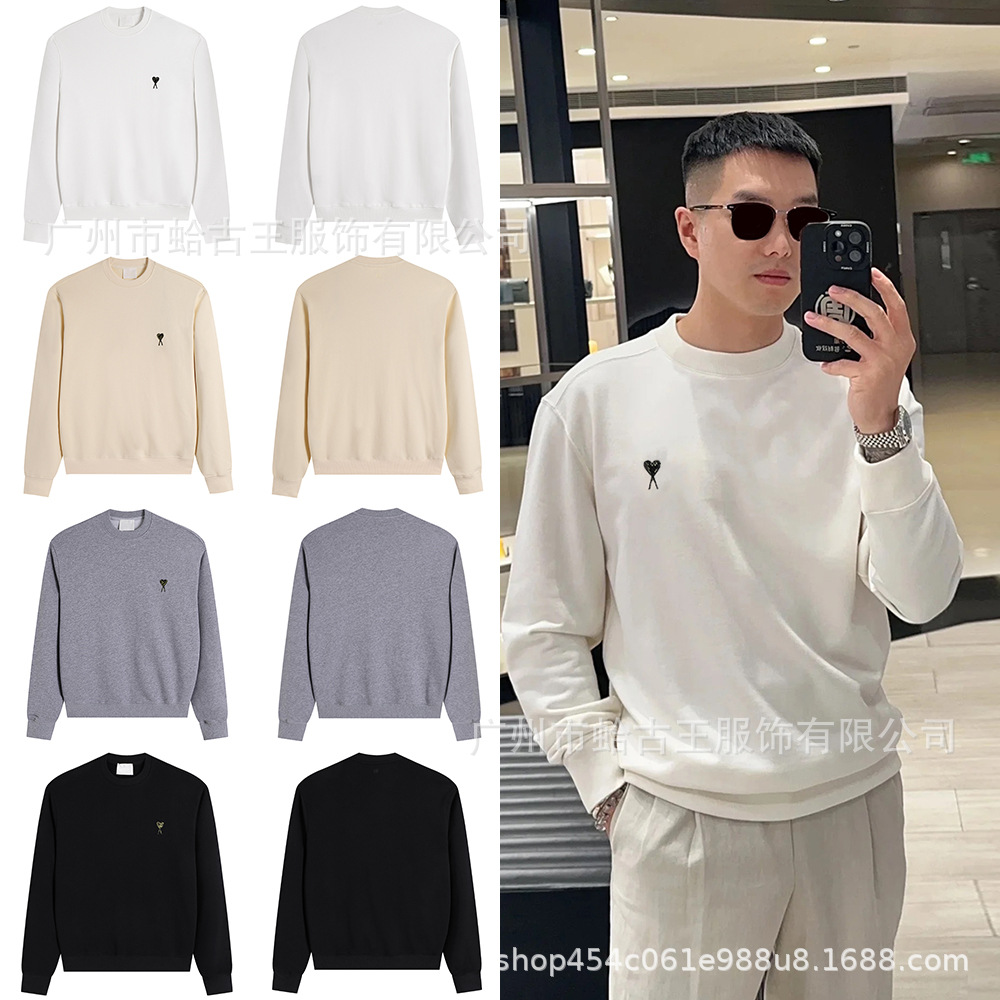 ami ancient卫衣秋冬款爱心刺绣圆领卫衣宽松休闲男女款上衣跨境
