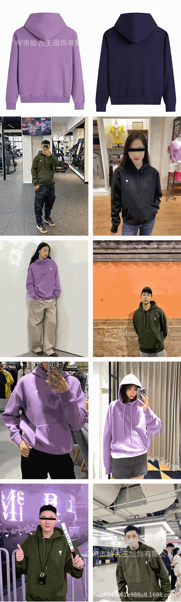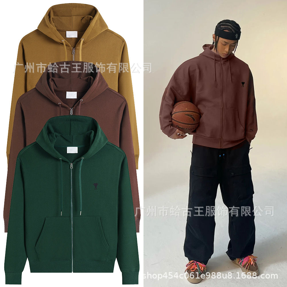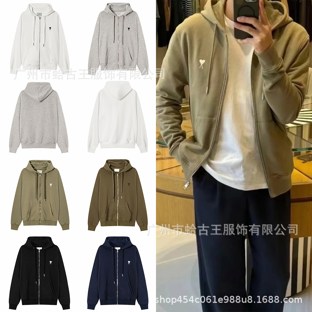 秋冬AMI ANCIENT卫衣小爱心口袋拉链刺绣连帽休闲外套连帽男女款
