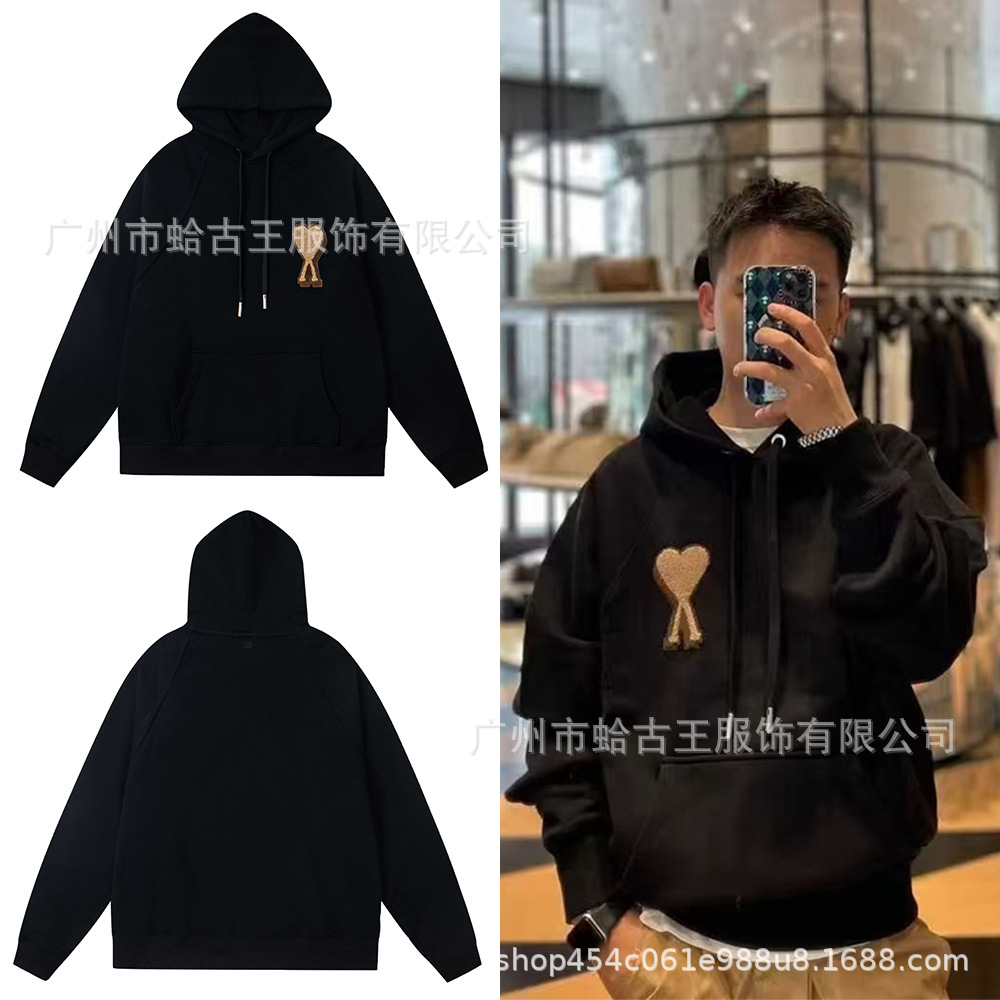 AMI ANCIENT 秋冬カジュアルフード付きスウェットシャツ、男性と女性用、織りラブハートルーズで多用途なパーカージャケット