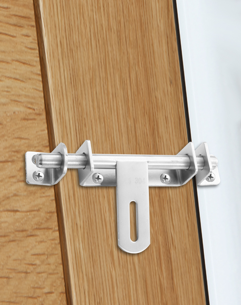 不锈钢左右插销带小锁反扣安全防盗木门栓卫生间关窗老式明装牛闩