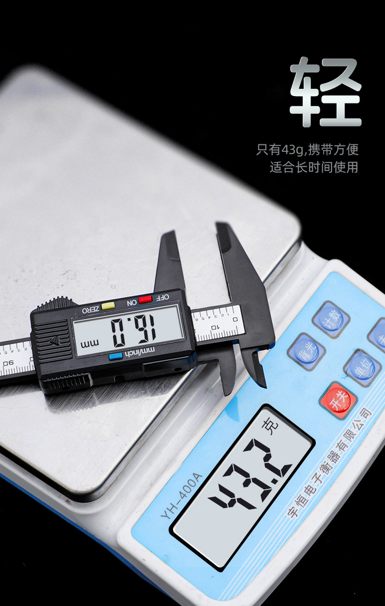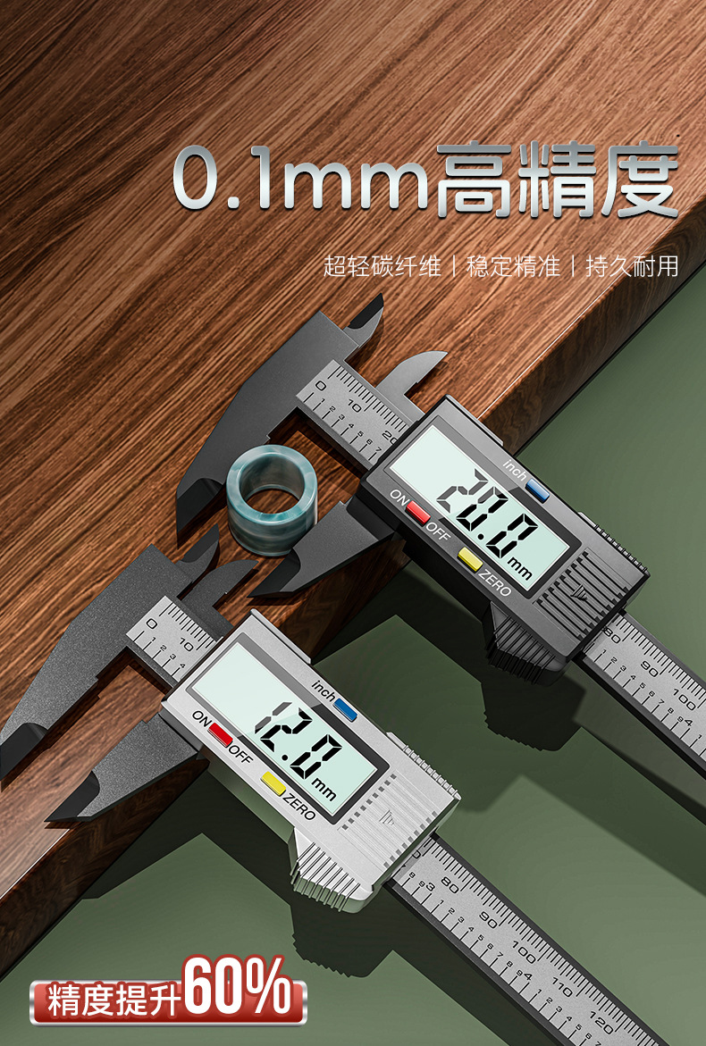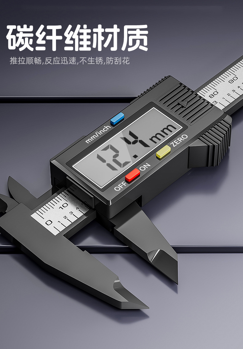 工业级高精度游标卡尺 高硬度便携碳纤维塑料大屏多功能数显卡尺