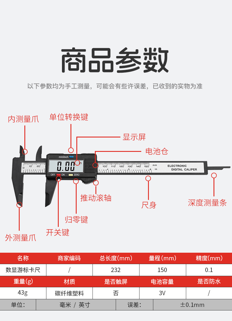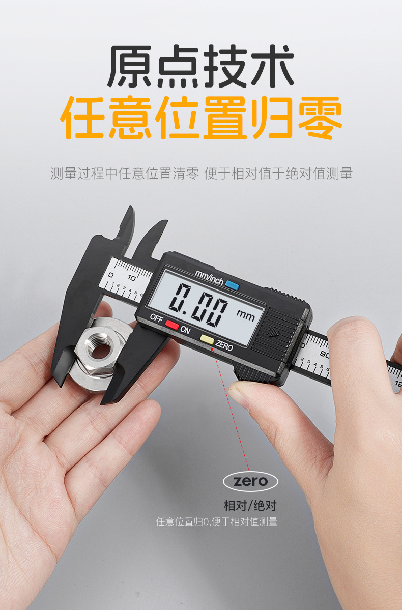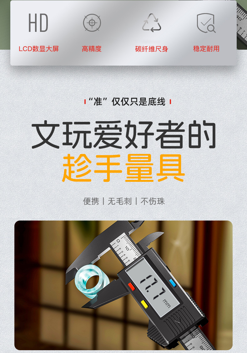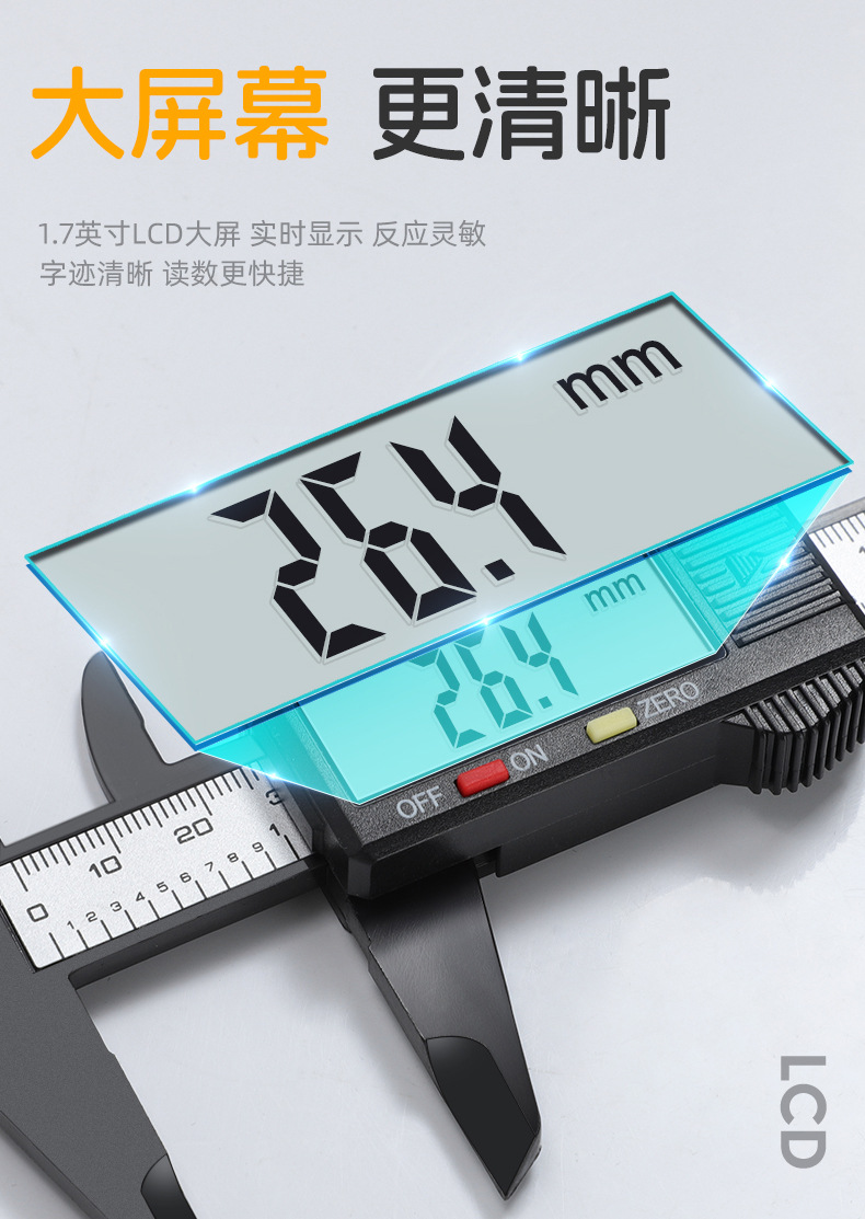 工业级高精度游标卡尺 高硬度便携碳纤维塑料大屏多功能数显卡尺