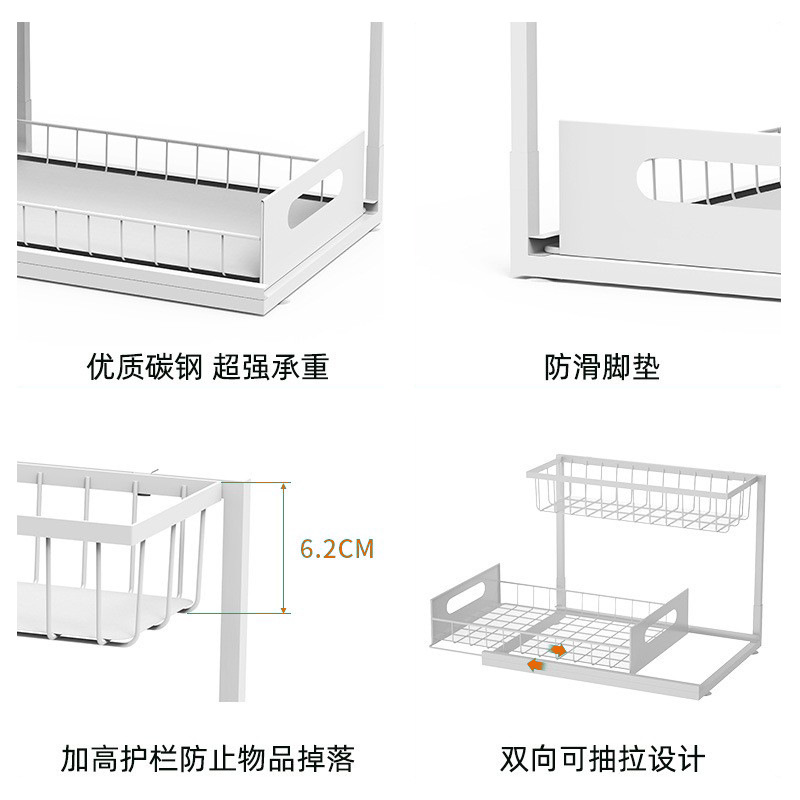 下水槽储物收纳架厨房橱柜置物架篮整理架子抽拉式抽屉可拆装跨境