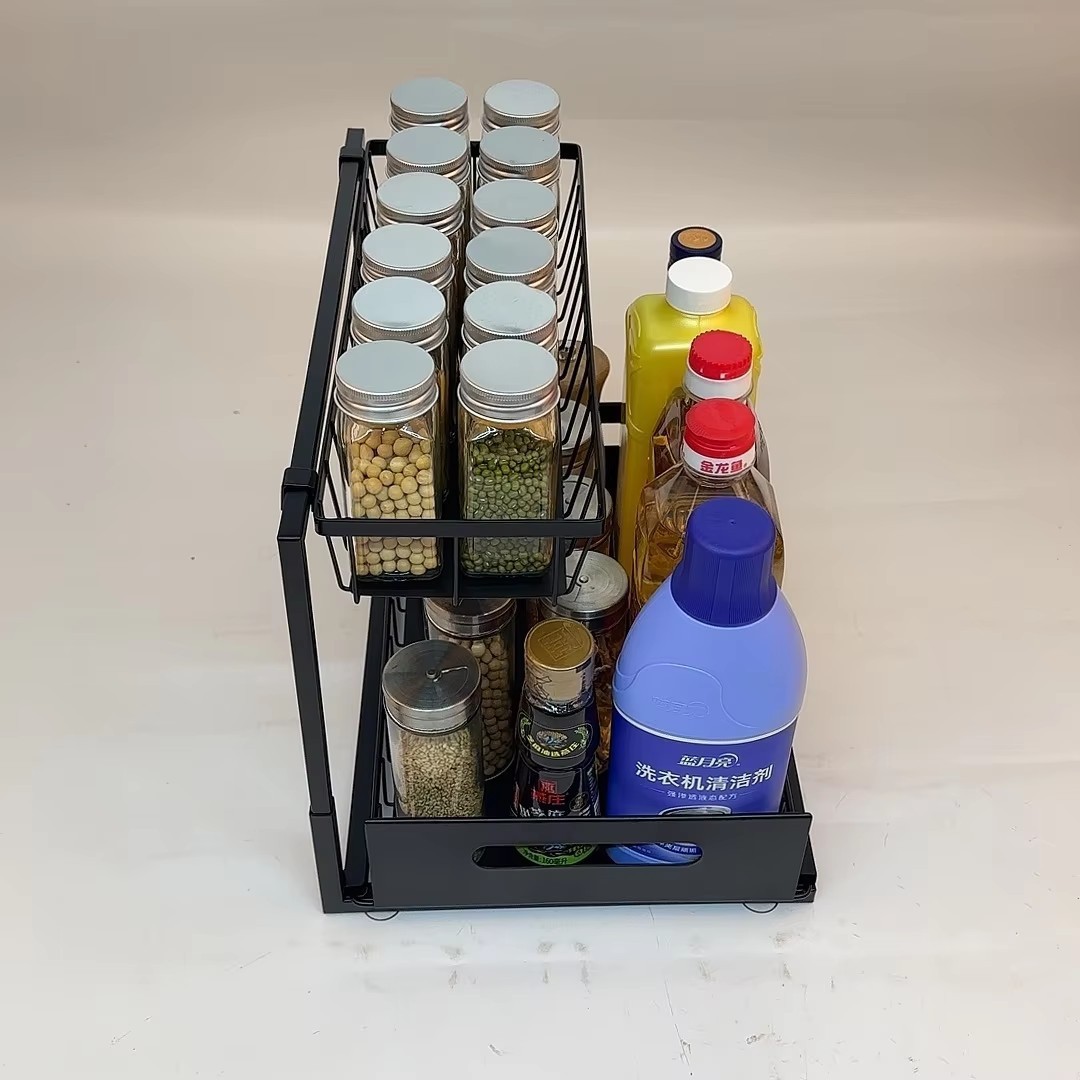 国境を越えた配送厚みのあるキッチンシンク下収納ラック二層引き出し式収納ラック多機能調味料ラック