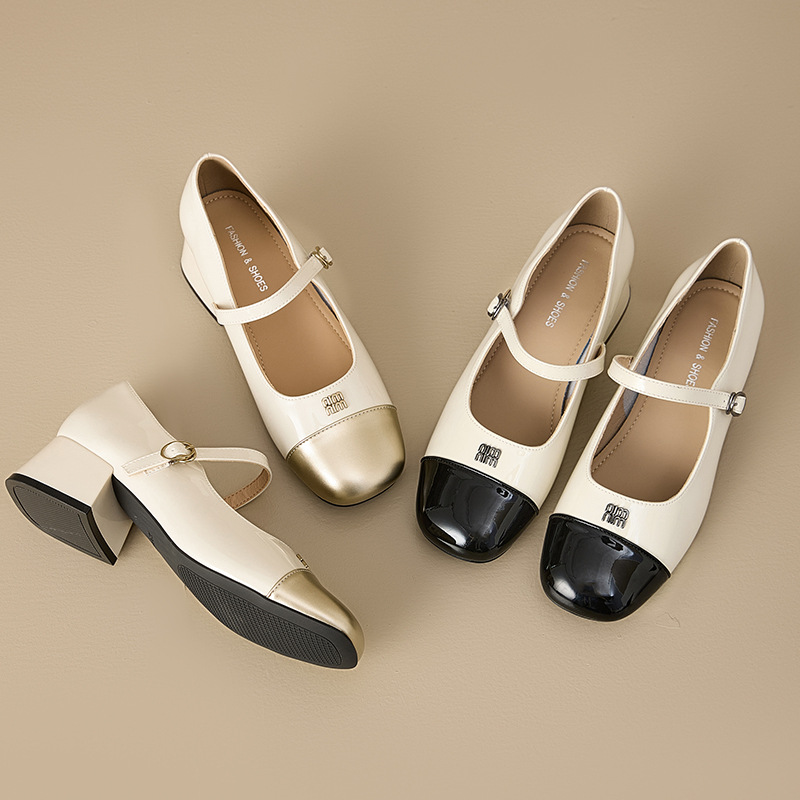 フランス風チャンキーヒールメリージェーンシューズ レディース 2025 スカートに合う 春秋 ワンストラップ エルサ風 ミラーファイバー素材
