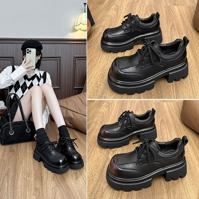 2025秋冬厚底增高乐福鞋马丁靴6CM粗跟新潮复古风舒适百搭小短靴