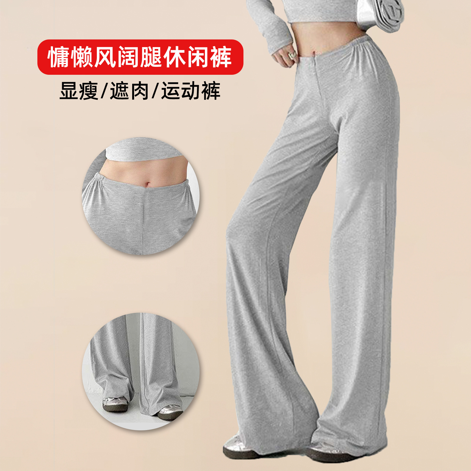 跨境女装慵懒风直筒休闲裤显腿长打底裤亚马逊希音垂感运动瑜伽裤