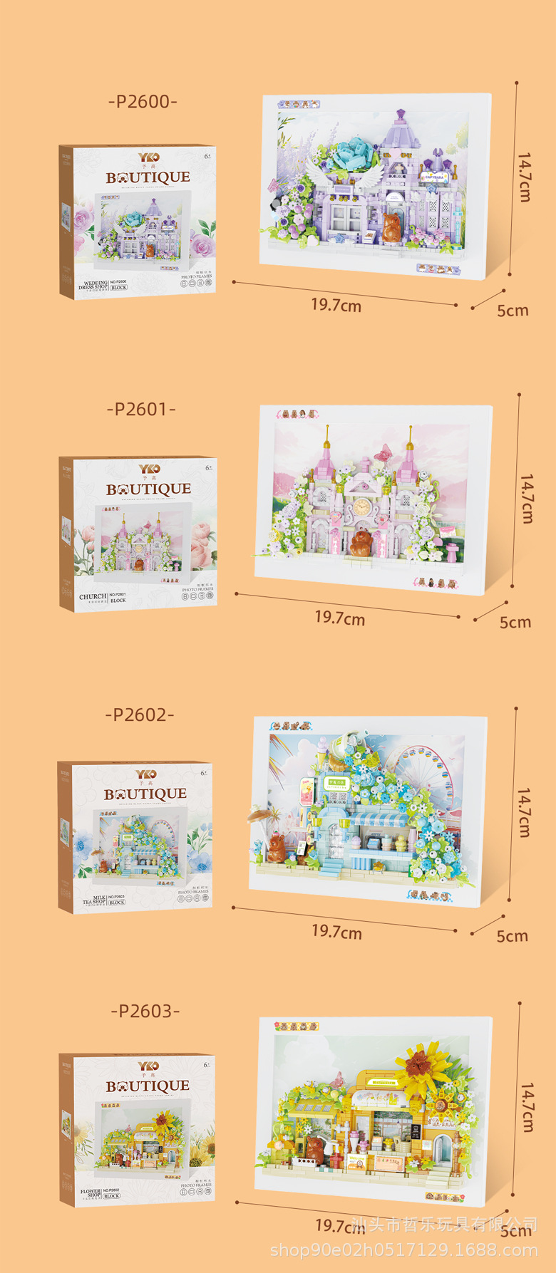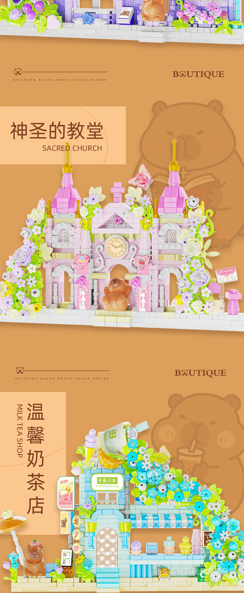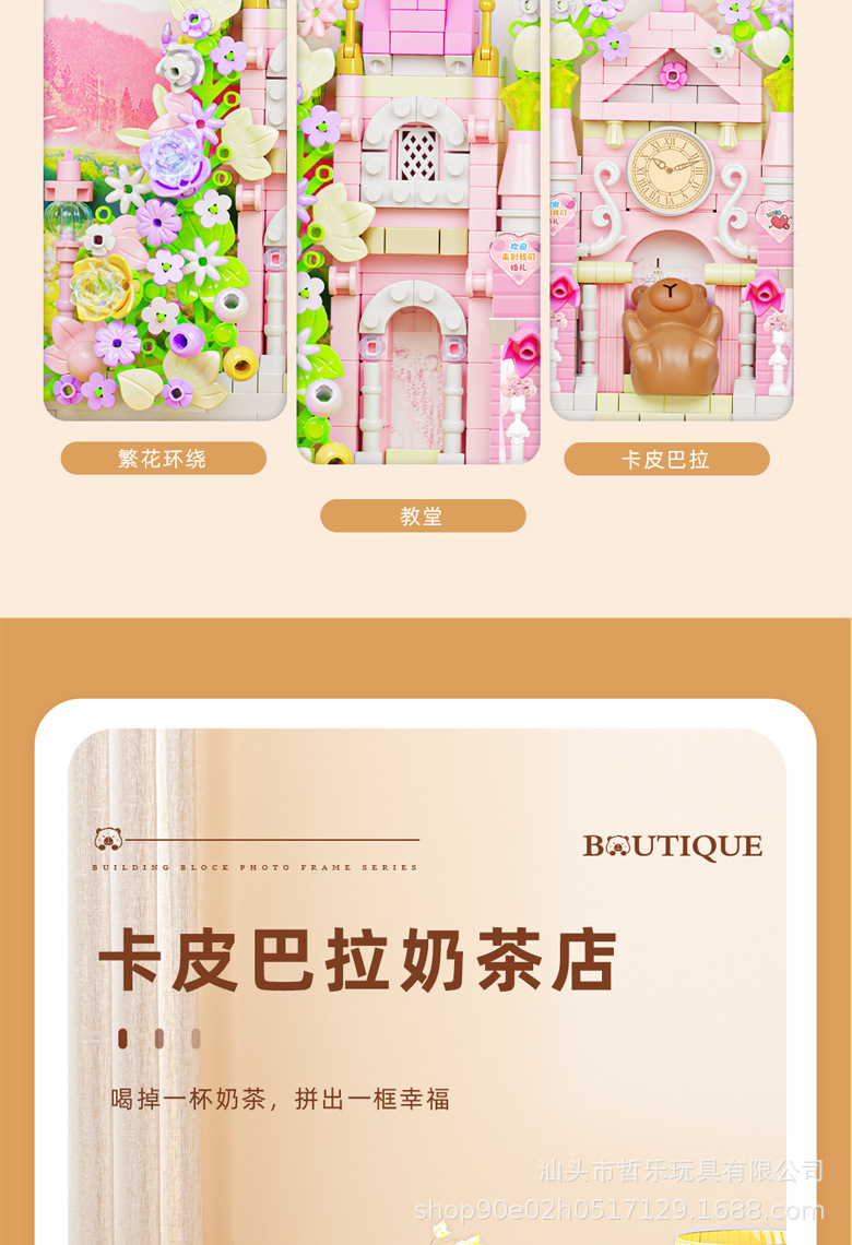 颜色 P2600/卡皮巴拉-婚纱店【694PCS】,P2601/卡皮巴拉-教堂【594PCS】,P2602/卡皮巴拉-花店【599PC】,P2603/卡皮巴拉-奶茶店【613PCS】