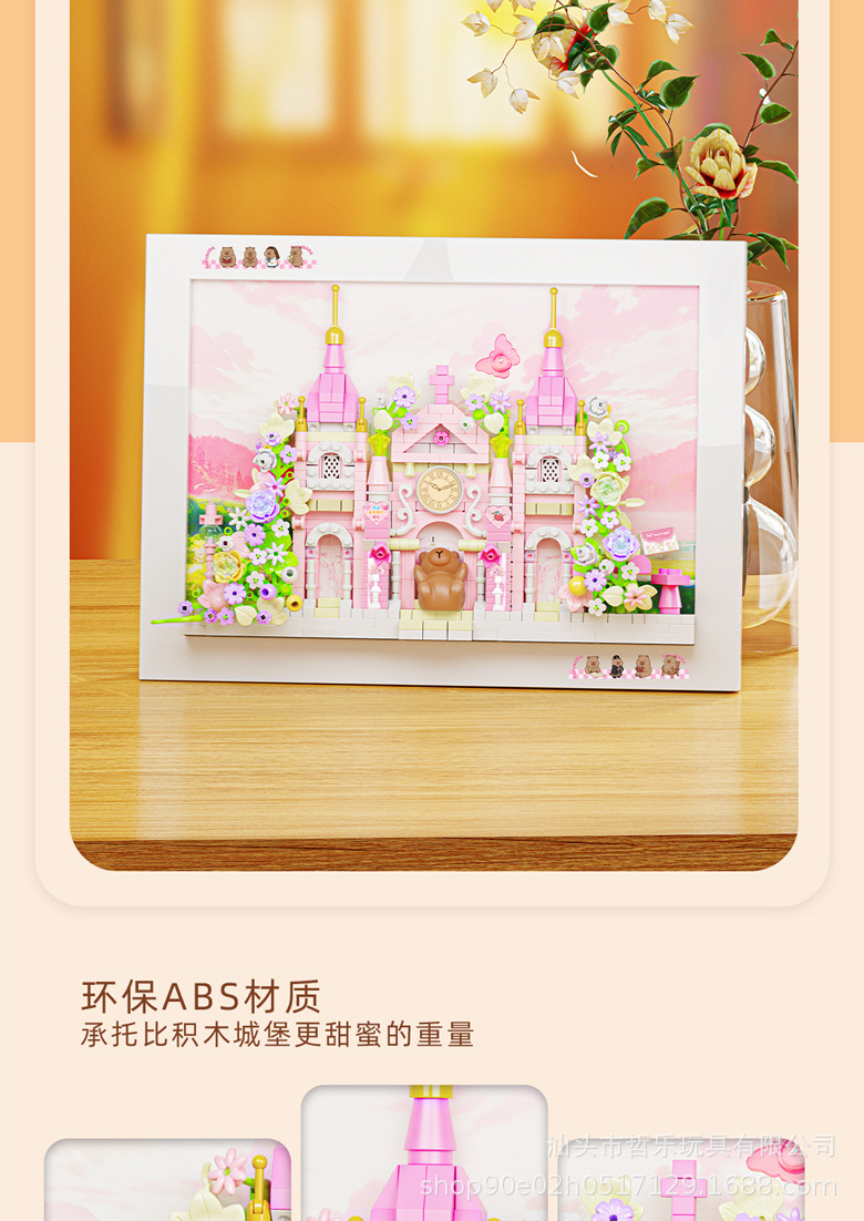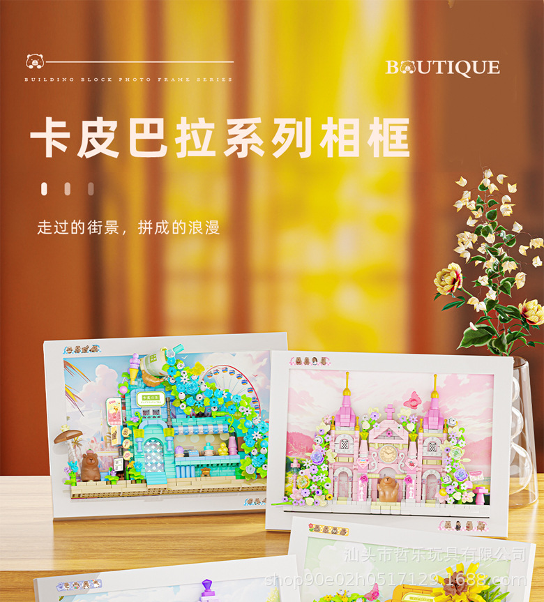 卡皮巴拉城堡街景冰箱贴磁吸相框立体益智微颗粒拼装积木玩具批发