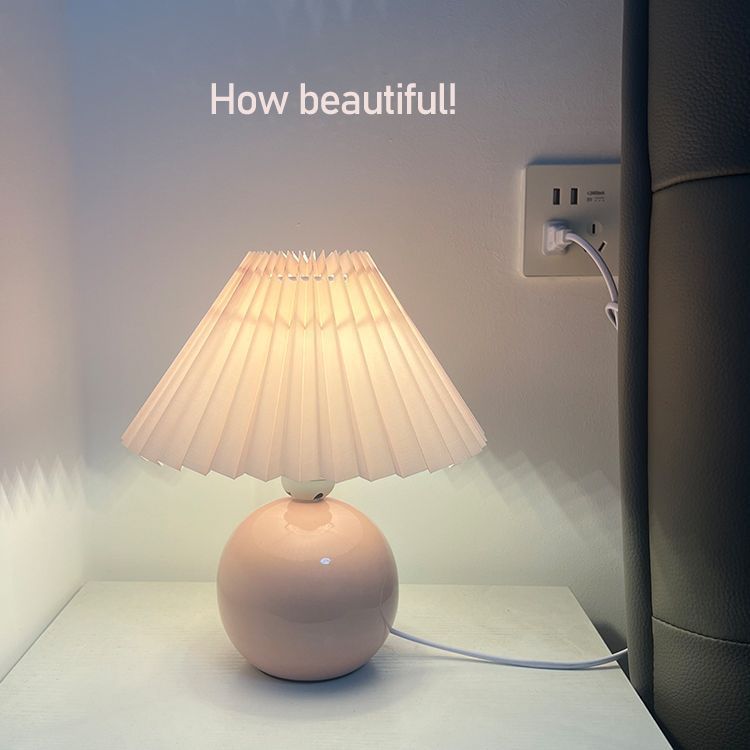 北欧セラミックプリーツテーブルランプ北欧インスタイル寝室のベッドサイドランプインターネット有名人ランプ女の子暖かい授乳ナイトライト