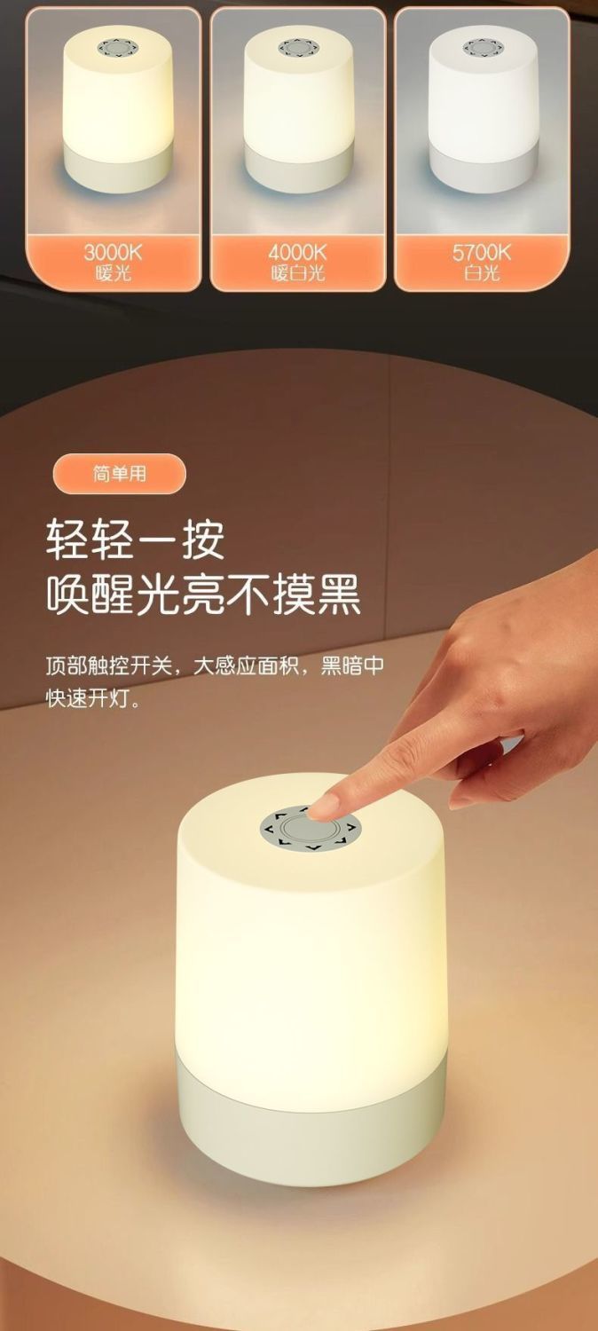 产品规格 柔光护眼-三色静音触摸小夜灯6000毫安,柔光护眼-三色静音触摸小夜灯4800毫安,柔光护眼-三色静音触摸小夜灯3600毫安,柔光护眼-三色静音触摸小夜灯2400毫安,柔光护眼-三色静音触摸小夜灯插电款