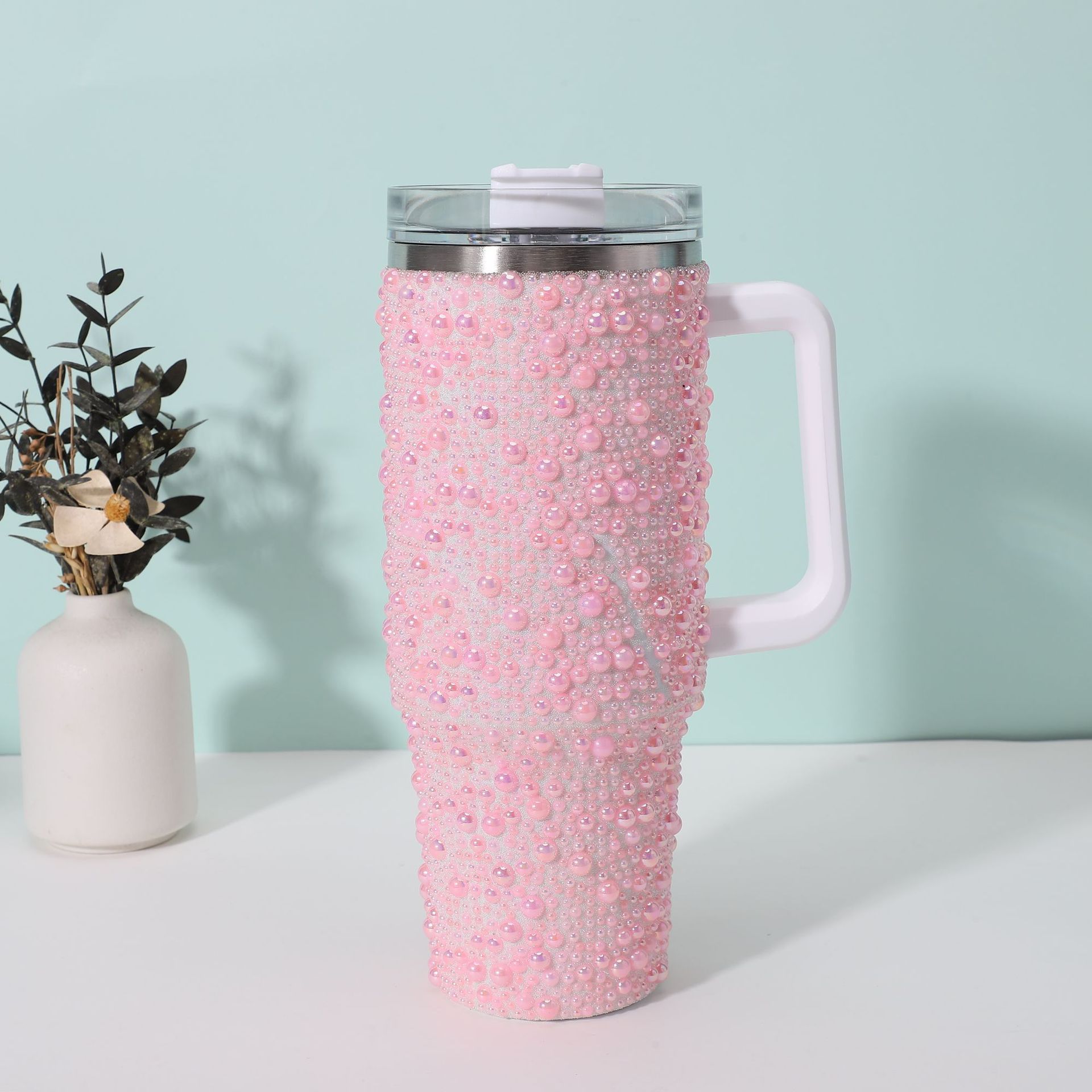 クロスボーダーステンレススチールパール断熱カップ大容量パールカーカップ40オンスハンドルストローダイヤモンドアイスカップ