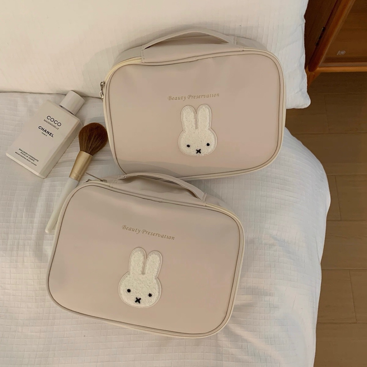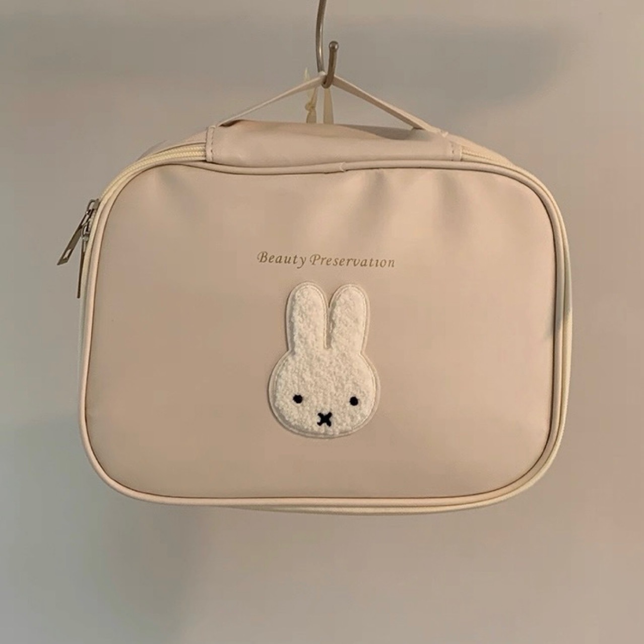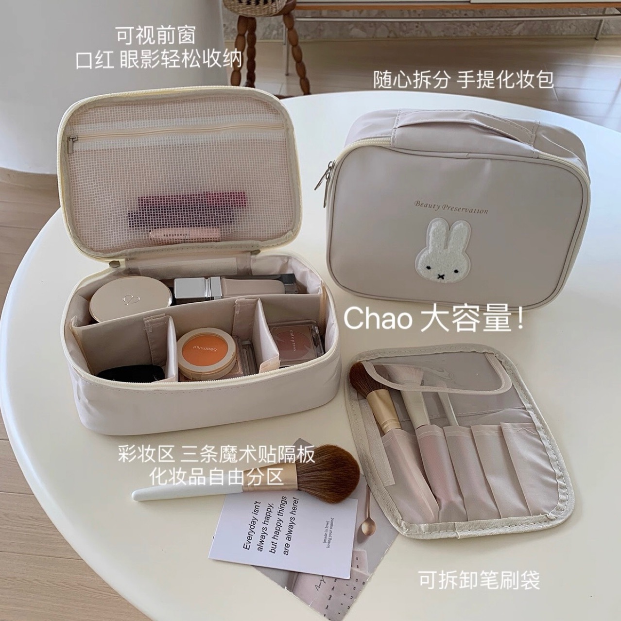 可爱兔子化妆包大容量便携分格洗漱包包女简约奶油风化妆品收纳包