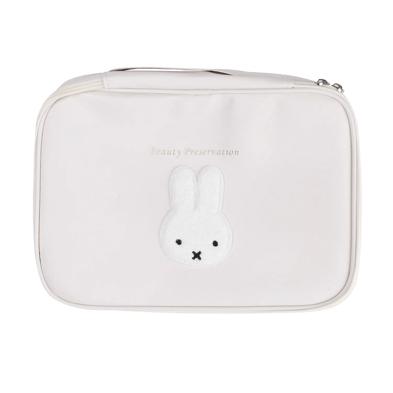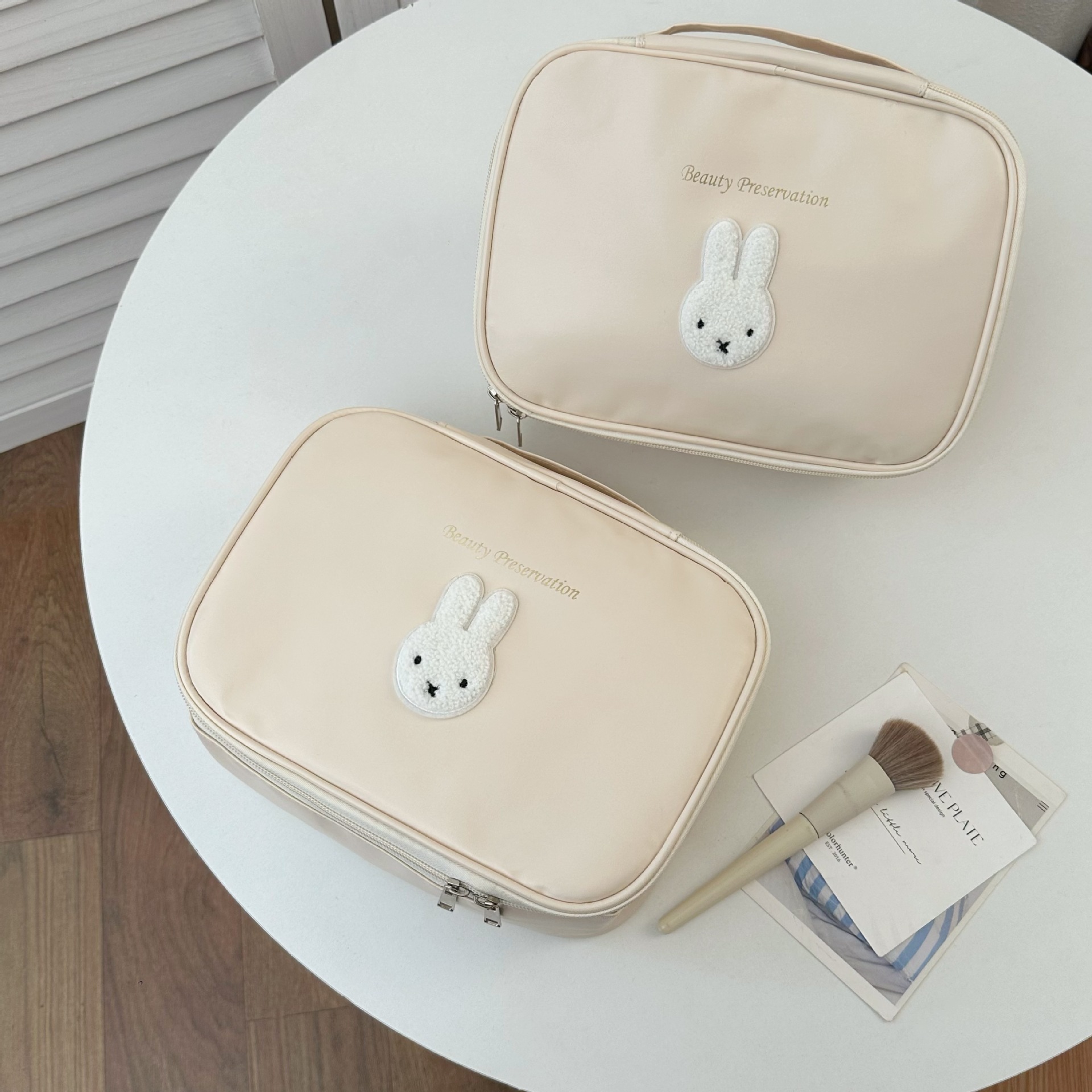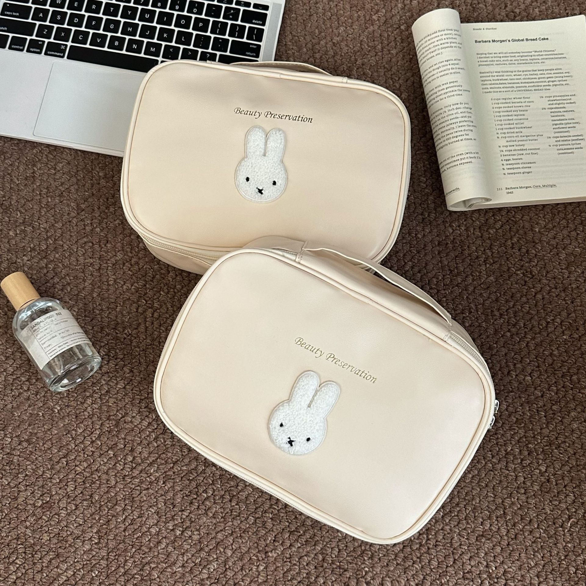 かわいいウサギの化粧品バッグ大容量ポータブルコンパートメントトイレタリーバッグ女性のシンプルなクリームスタイルの化粧品収納袋