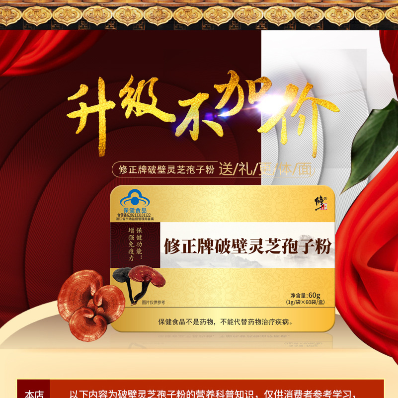 修.正破壁灵芝孢子粉 中老年保健品灵芝粉营养品 增强免疫力 60袋