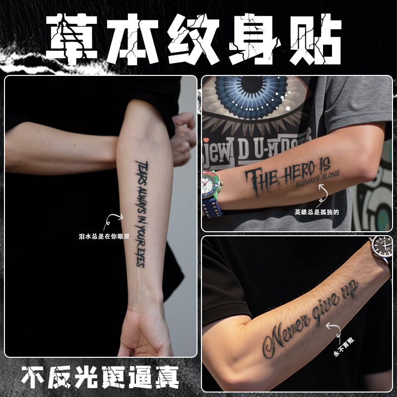 英文字母 帅气手臂纹身贴草本大腿半永久手臂仿真果汁刺青不反光
