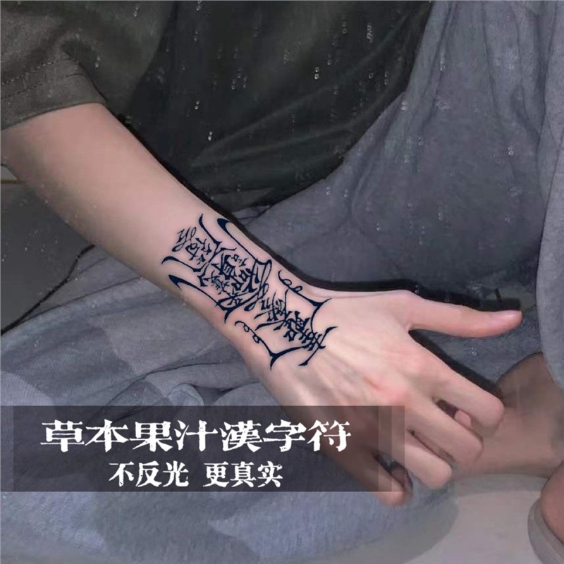 冰娇草本果汁纹身贴暗黑汉字图案半永久刺青逼真不反光防水纹身贴