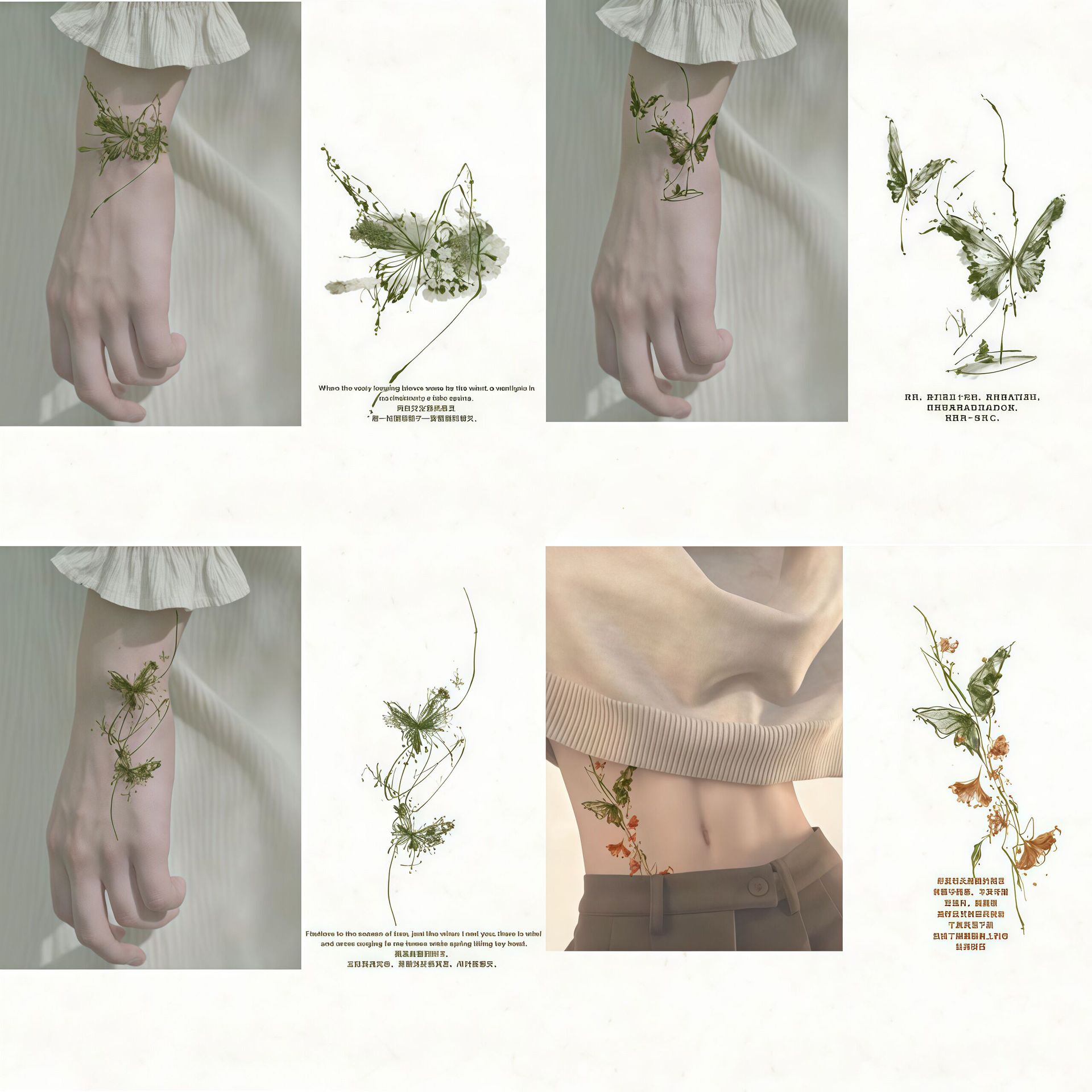 蝶の花の刺青の女性の防水の持続的な草本の半永久的な高級感の鎖骨insの腕の花の腕の2024